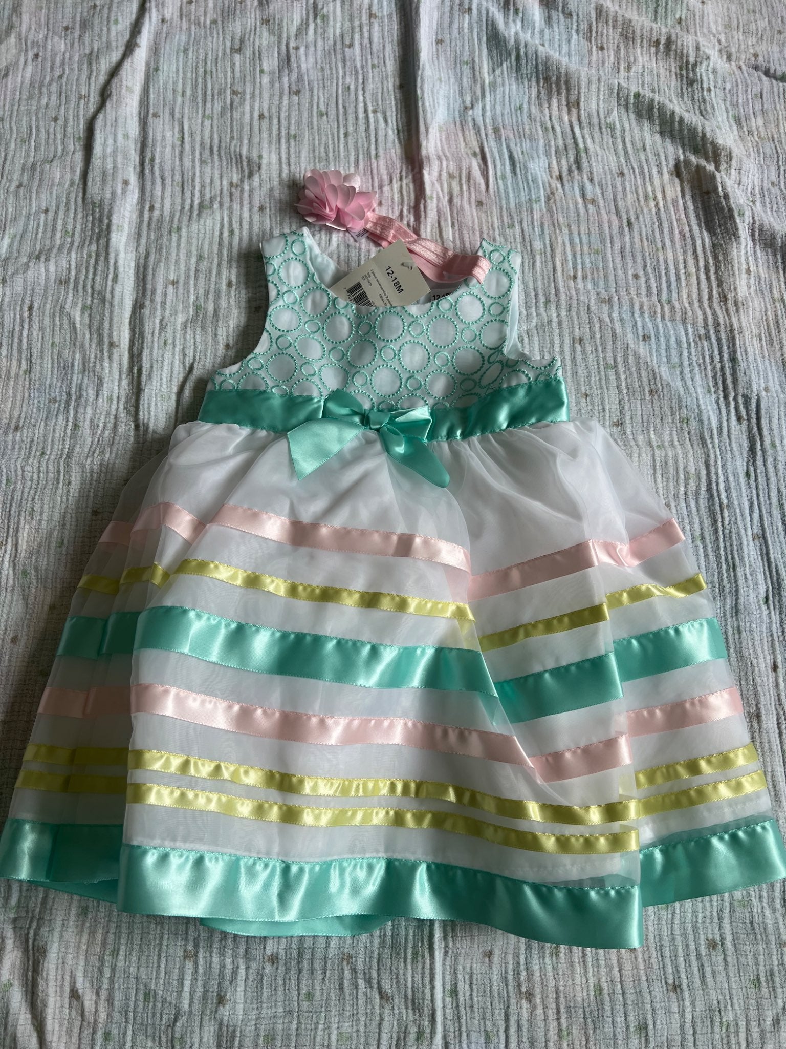 12-18 stripe summer dress with headband , Kids 18 Month (12-18M)