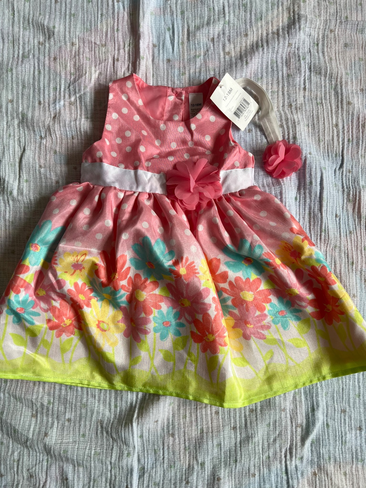 12-18 summer flower dress with headband , Kids 18 Month (12-18M)