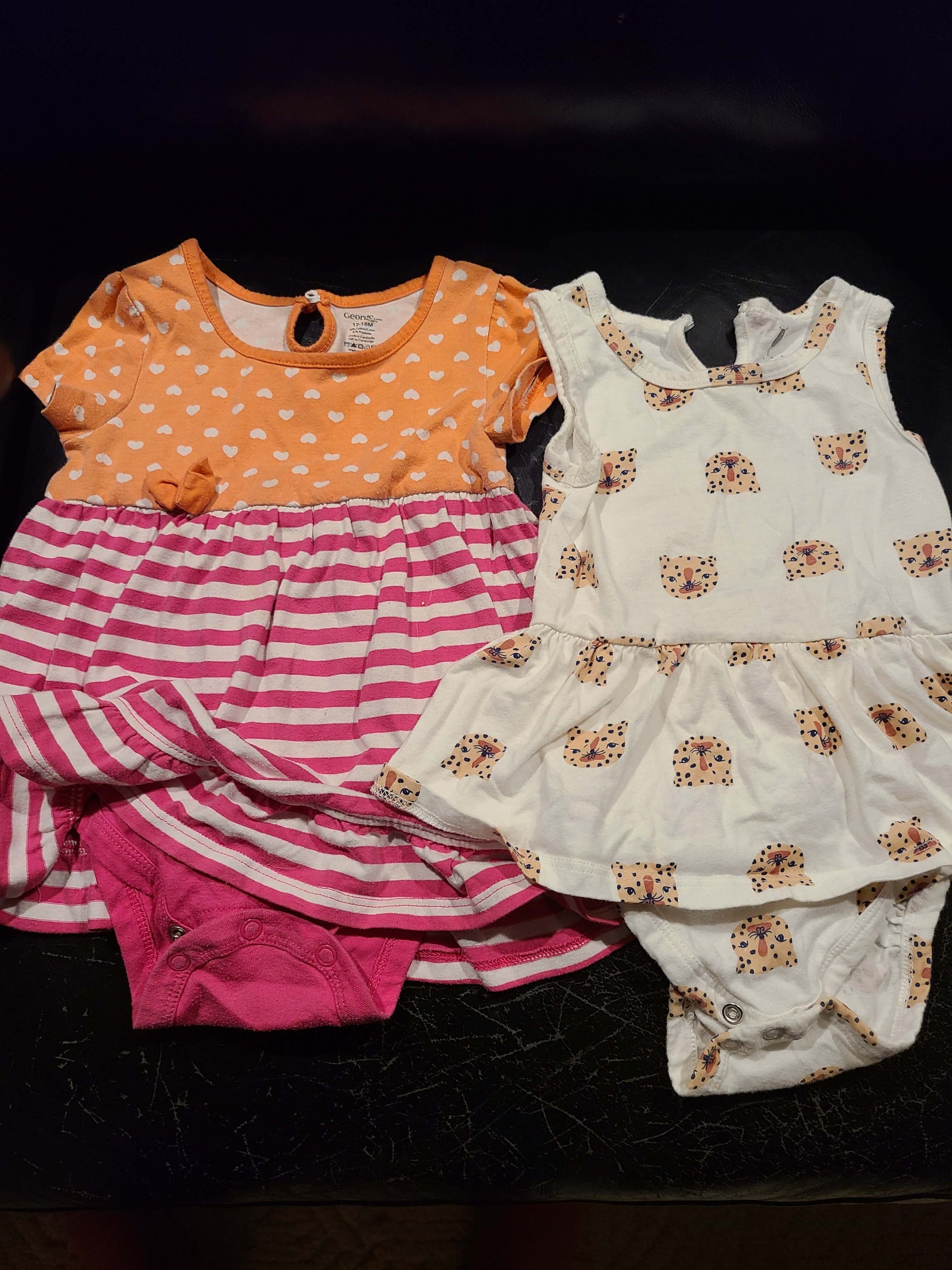 Description : 12 to 18 month shirt onsies.. 2 pcs.. one is orange and pink and one is white with cats