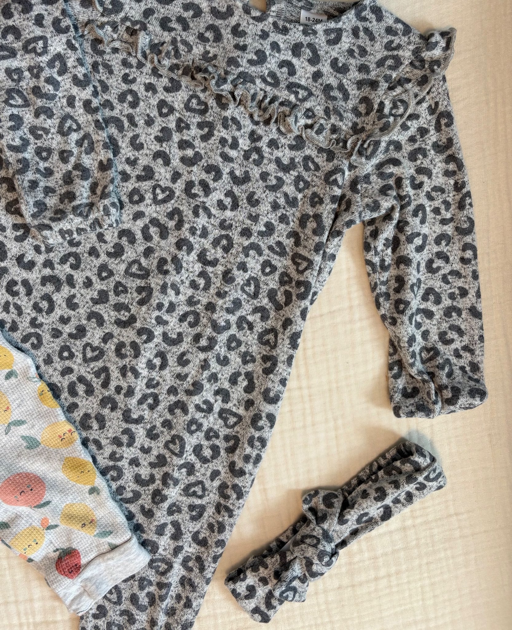 x1 George long sleeved footless outfit with leopard print spots and matching fabric headband