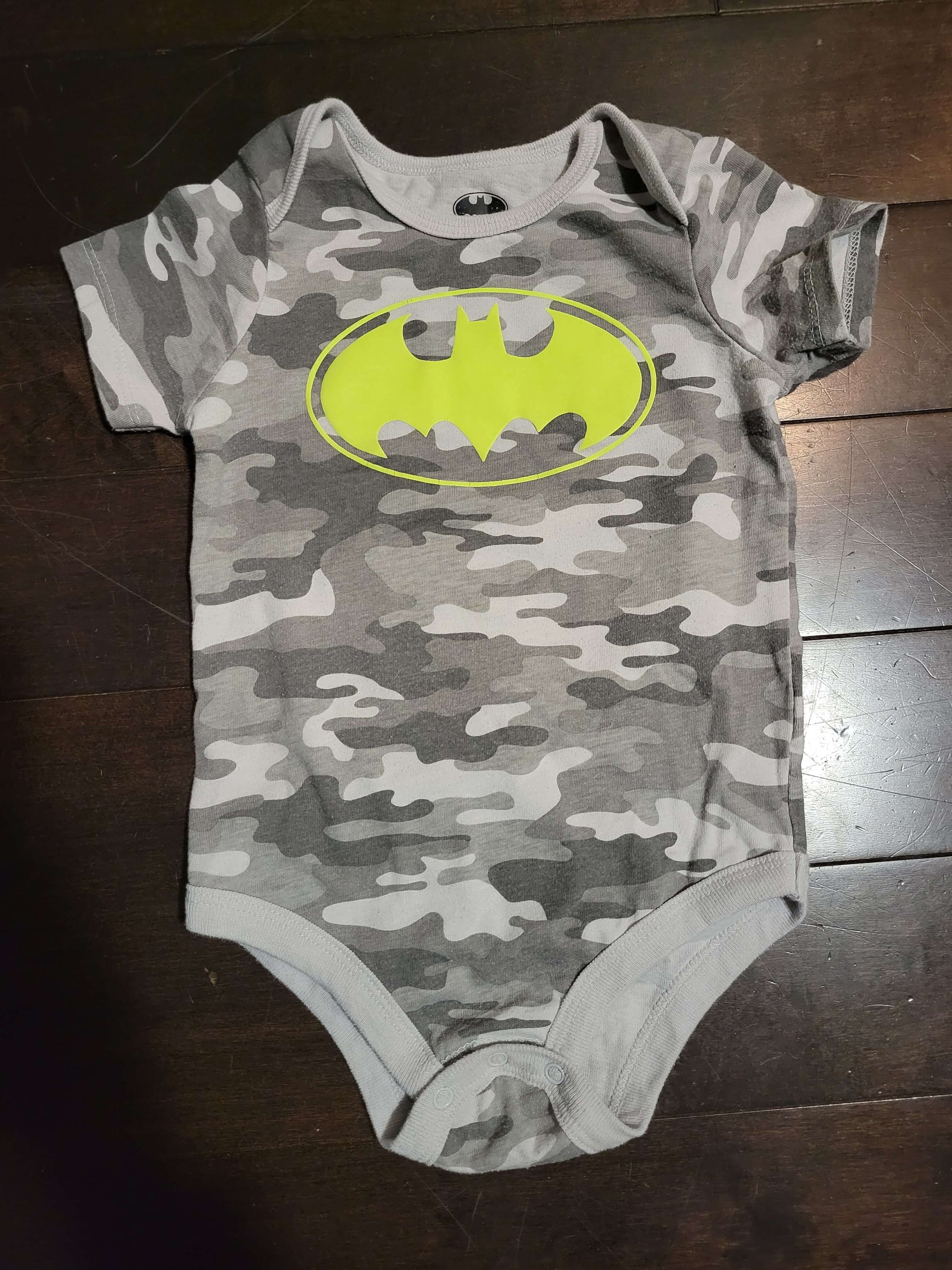 Description : 3 piece Batman set. Short sleeve onesie, longsleeve onesie and pants, all 18-24M They all have normal wash wear