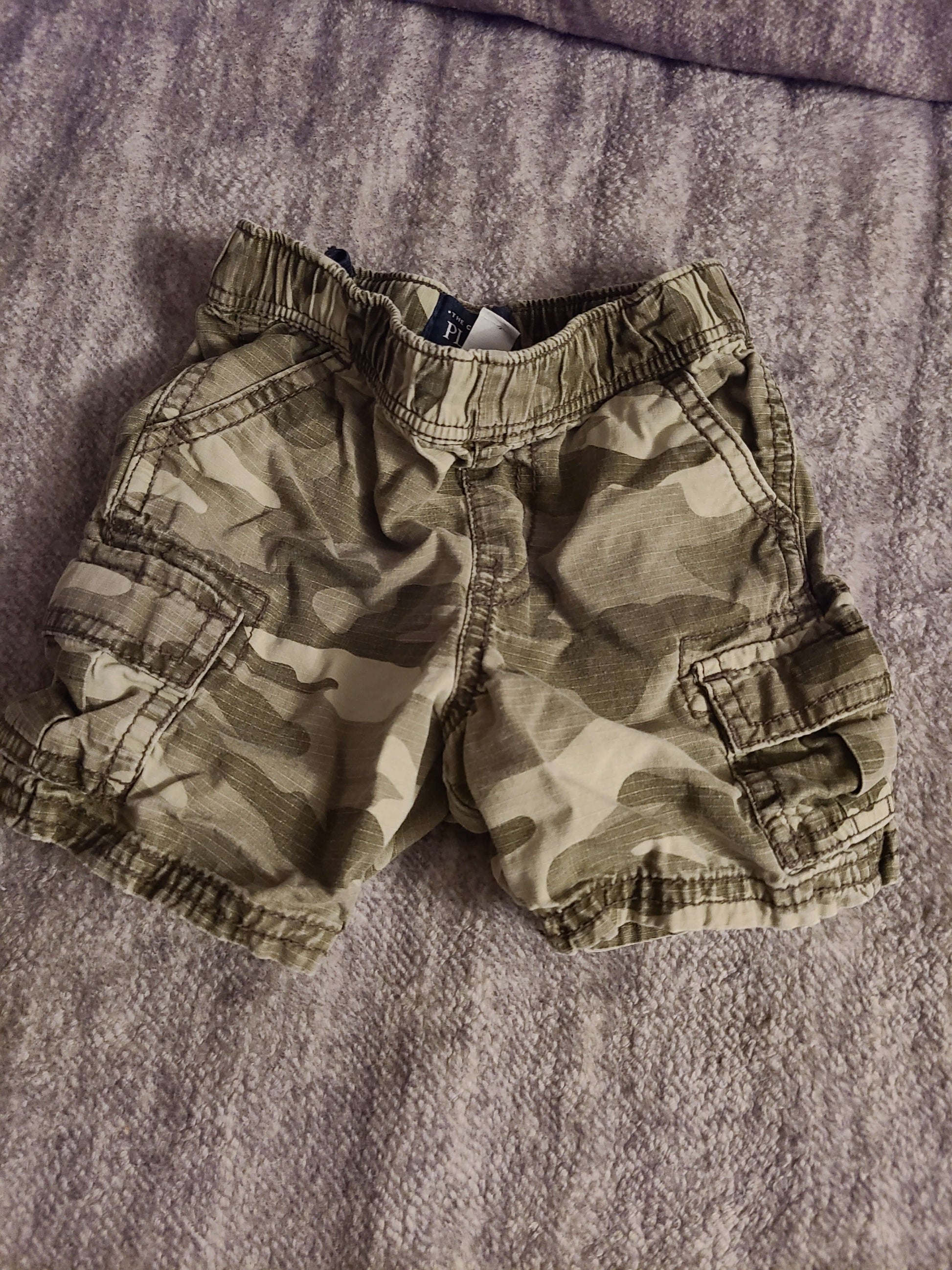 Description : 18 month shorts.. one green camo, one green and grey stripped and the last is blue with dinosaurs