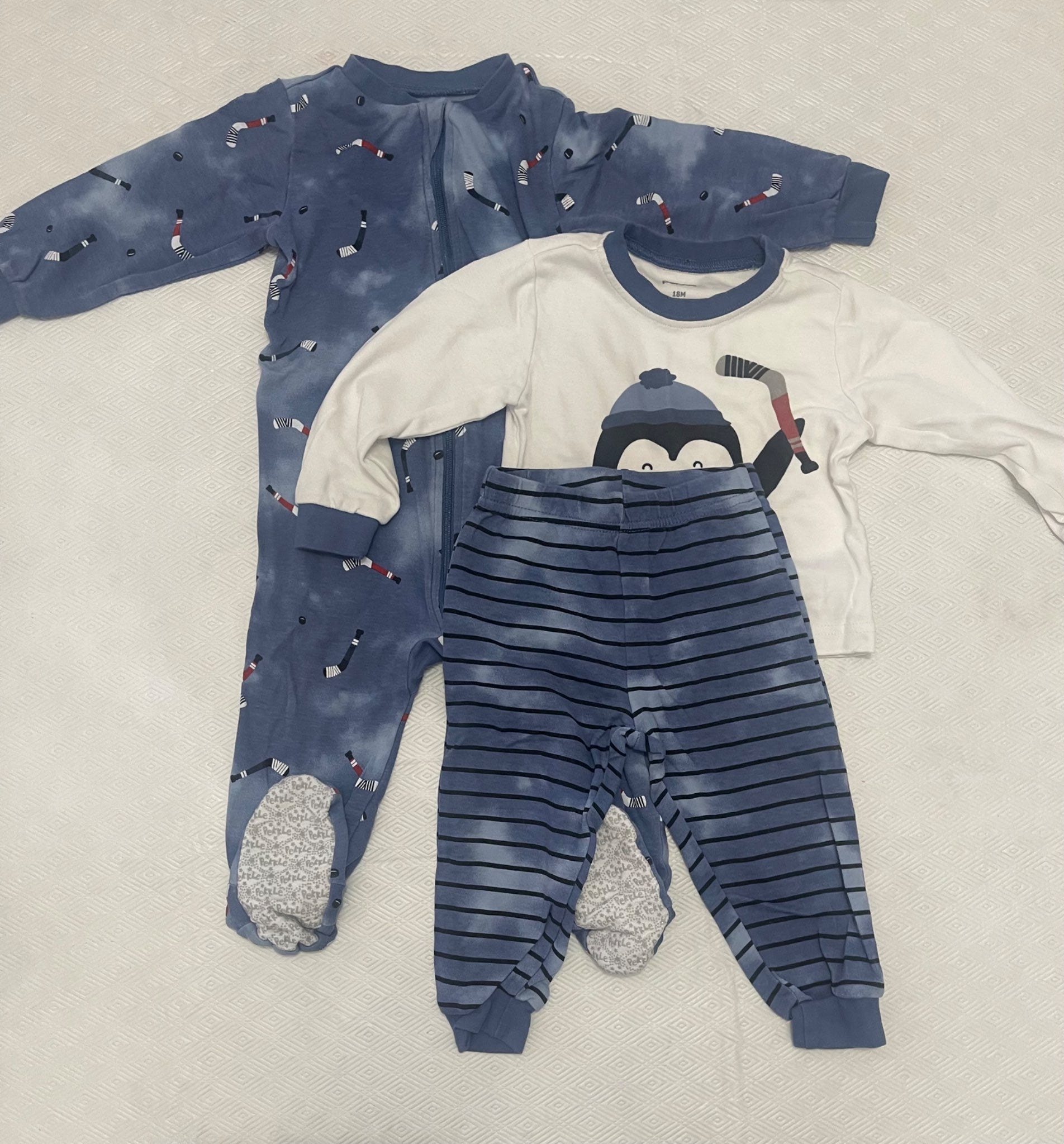 Description : 4 Sets of Sleeper PJs, 2 Long Sleeve Footed Zipper PJs, 2 Long Sleeve Pants PJs. Pekkle (Costco) Brand