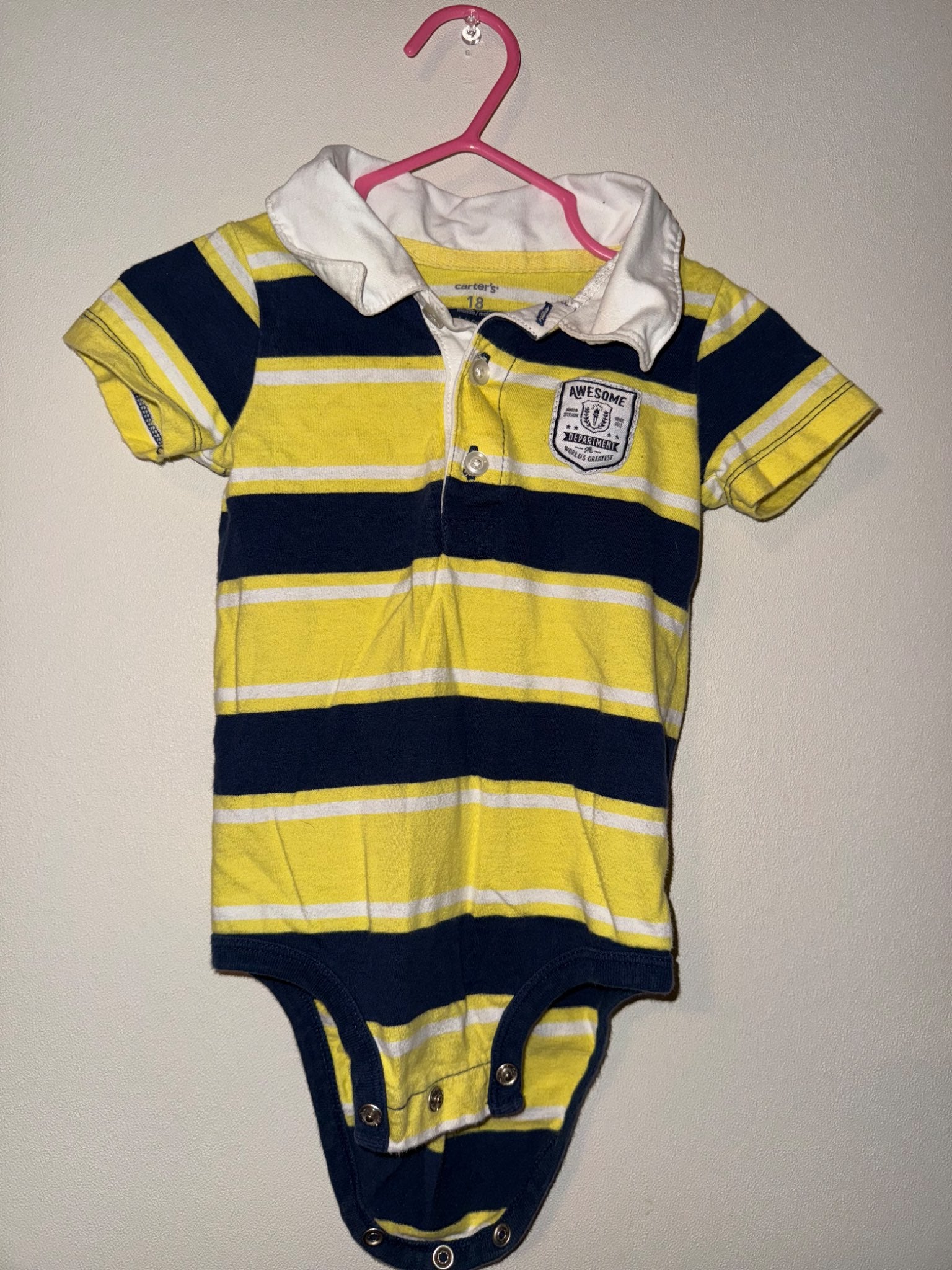 Description : One Carter’s onesie & Calvin Klein tshirt. Size 18M, EUC.