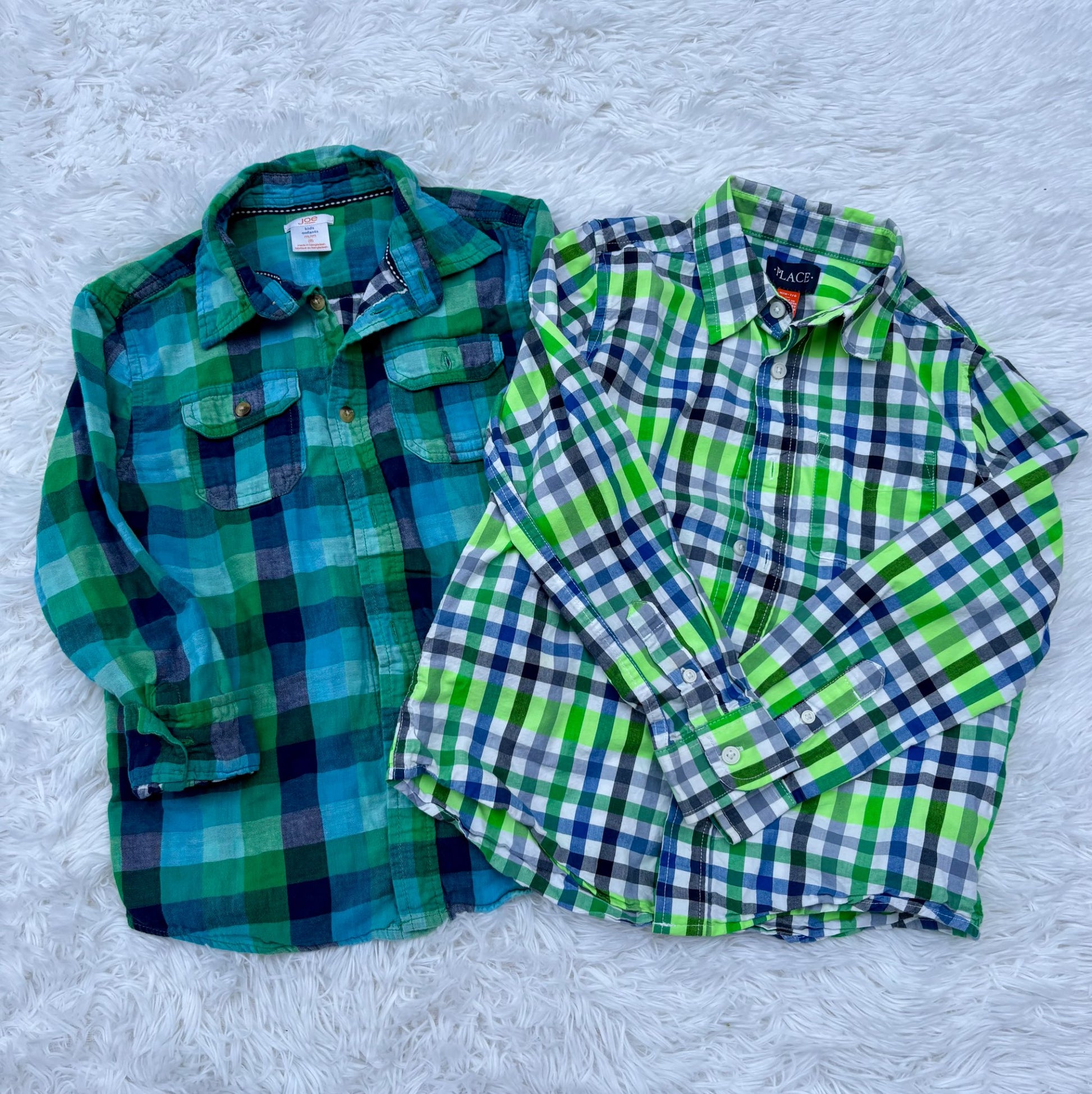 2 Boys’ long-sleeved plaid button up shirts - size 7/8, Kids 7 & 8 (small)