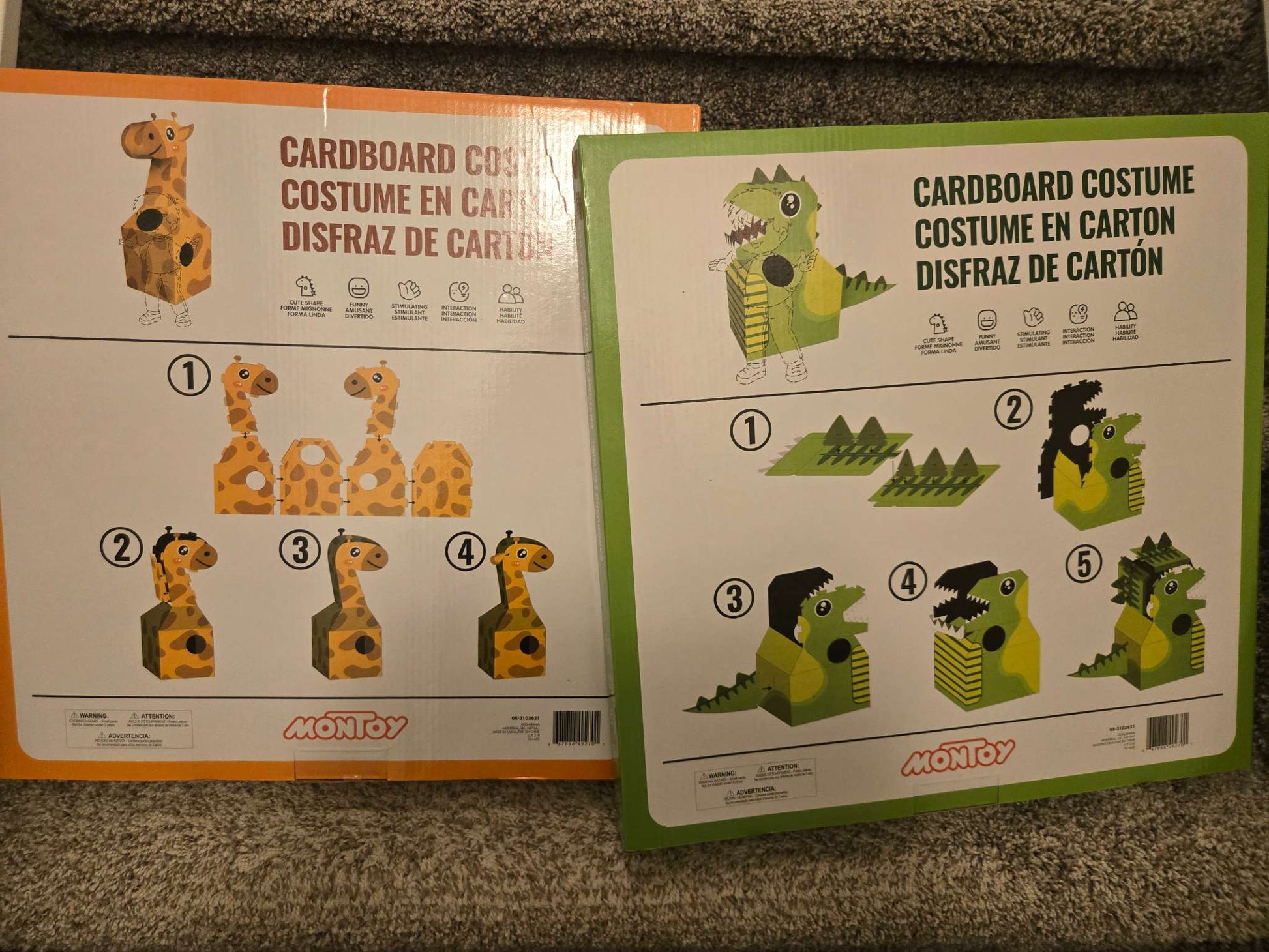 Description : Brand New 2 Cardboard Costumes - Dinosaur and Giraffe