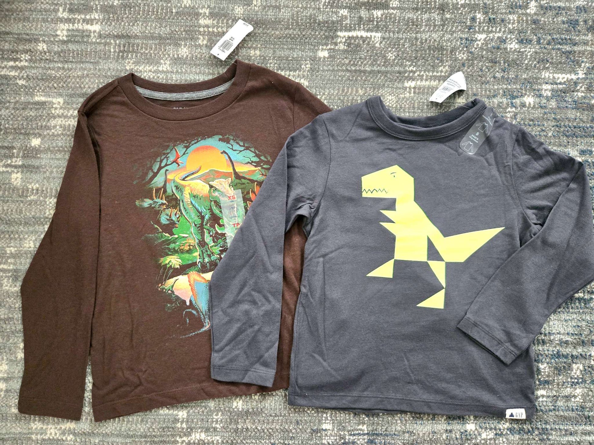2 Dinosaurs Long Sleeves ( GAP and Old Navy) Retails $25, Kids 5/5T (extra small)