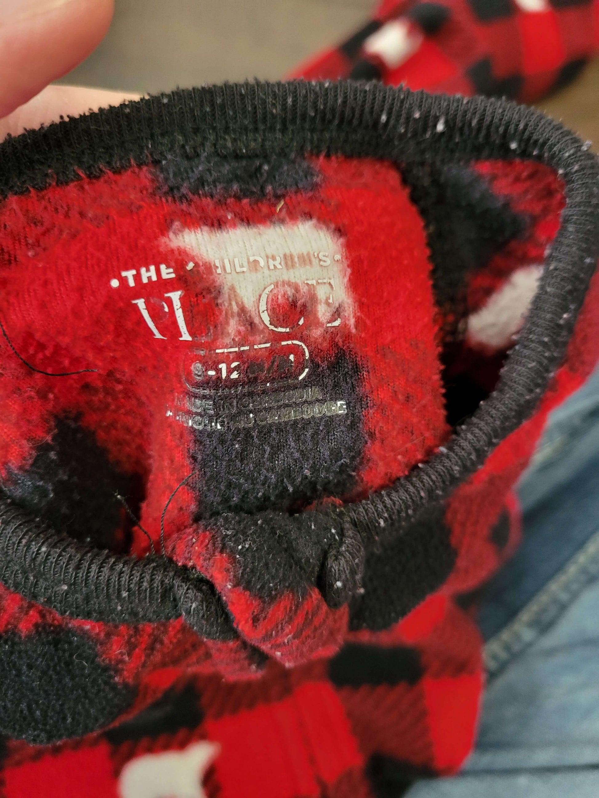 Description : Black botton up has a bit more wash wear but no stains, rips or holes. Pekkle brand and size 9 months Red plaid zip up has some wash wear and is from the Children's Place, size 9-12 months