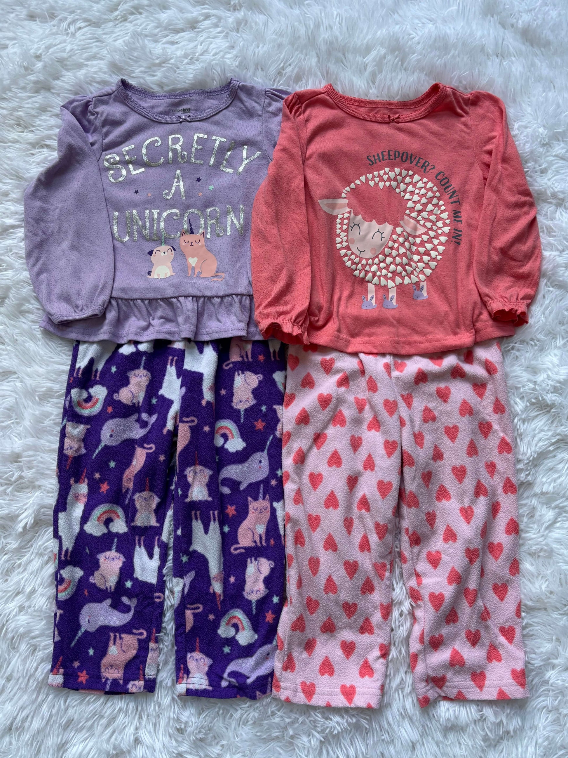 2 pair of 2-piece pajamas, Simple Joys by Carter’s, 2T girls, unicorn and sheep, Kids 2T