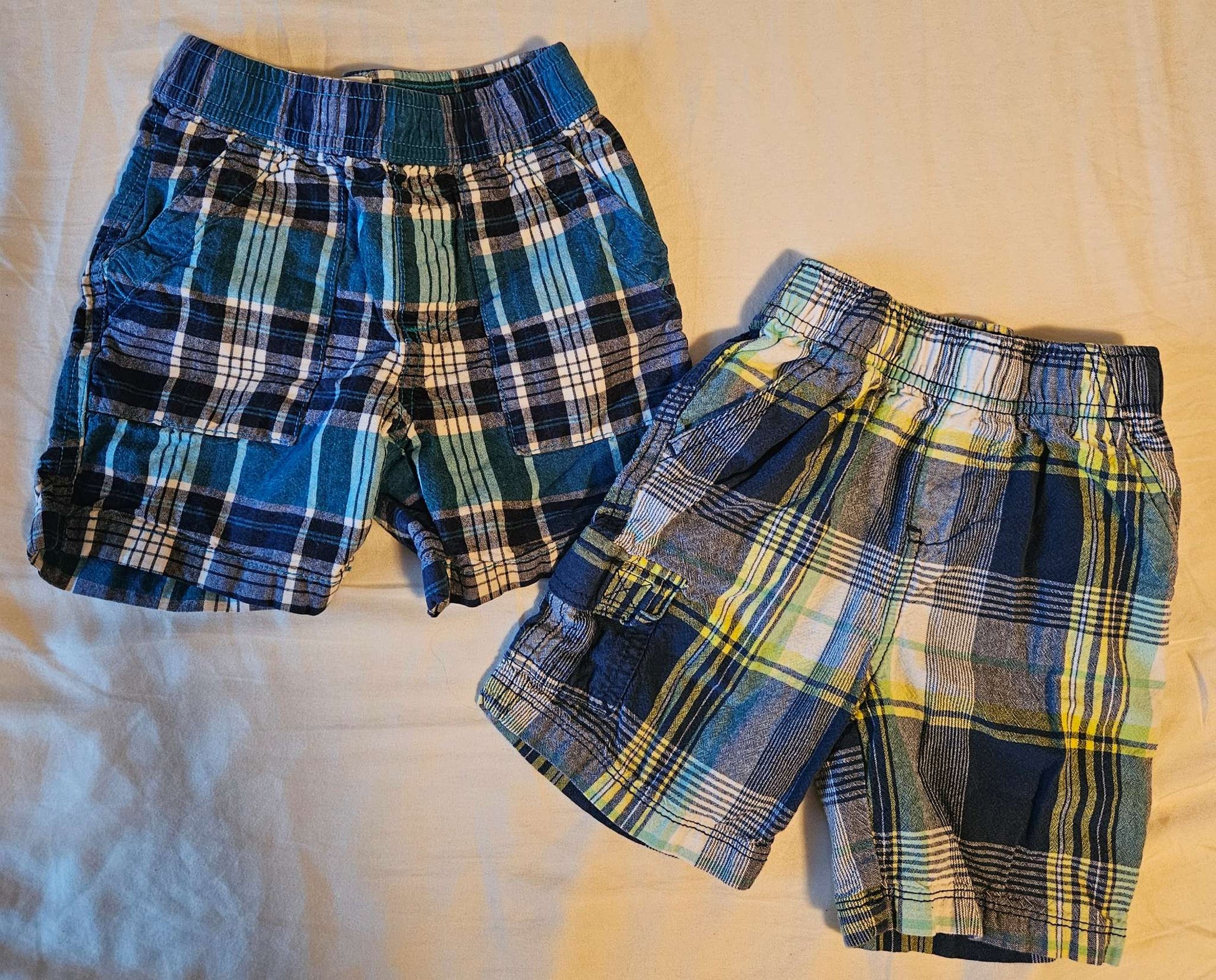 2 pairs of size 2T plaid shorts (yellow and blue is George, light blue and dark blue is childrens place) , Kids 2T