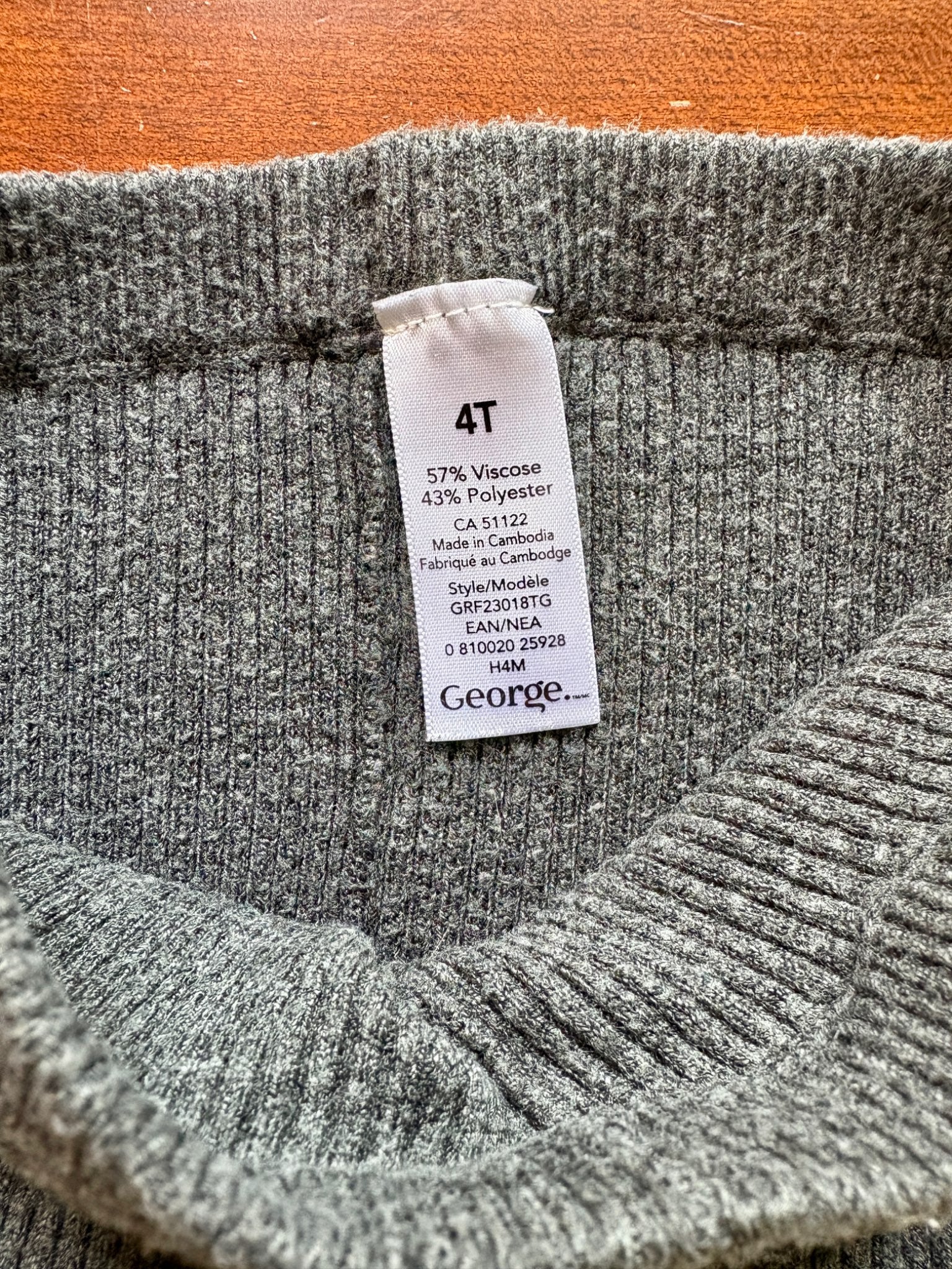 Description : Girls 3T cable knit sweater dress in EUC, from George Grey leggings/footless tights are size 4T but fit like a 3/4 due to style being more similar to tights than leggings. VGUC due to pilling. Very stretchy. From George Retails for $20 Smoke free pet friendly home