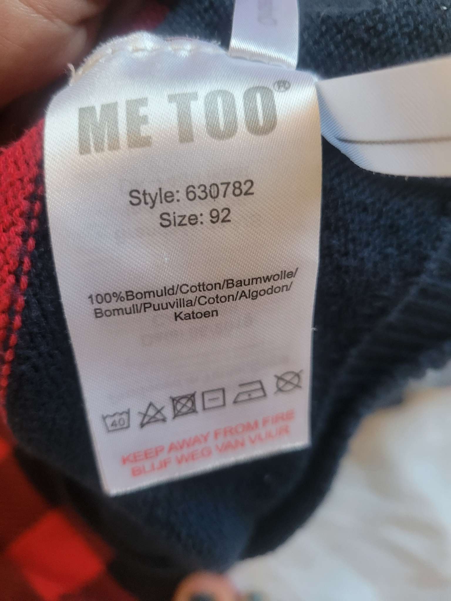 Description : Blue/Red Stripped Sweater - Me too Brand size 92 (2t - fits more like 3t imo) Black/Red Fleecey Carters 3T - Excellent used conditions