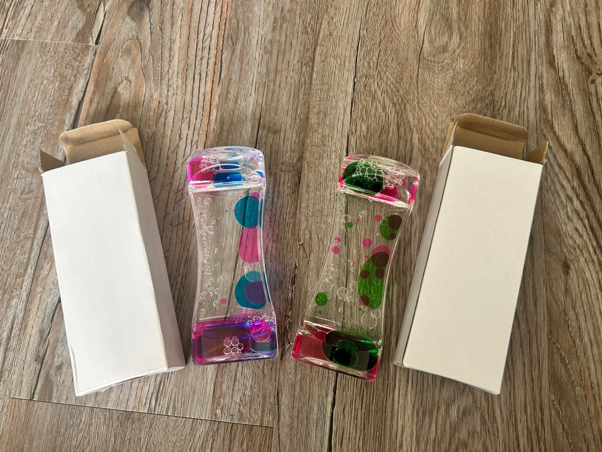 Description : Paid $25+ for 4 pack Fun, Relaxing Experience - Great for an office desk space, bedroom, or even as a remind when brushing your teeth, the soothing colors remind you to slow down, relax, and enjoy each moment. Natural Stress Relief - The slow movement, vibrant colors, and smooth droplets can help children and adults refocus, let go of stress or anxiety, and even find a more rhythmic tempo at home or in the office. Leakproof, Durable Design - liquid motion bubblers are sealed from top to bottom which means kids can shake them or knock them over without you worrying about spills or messes.