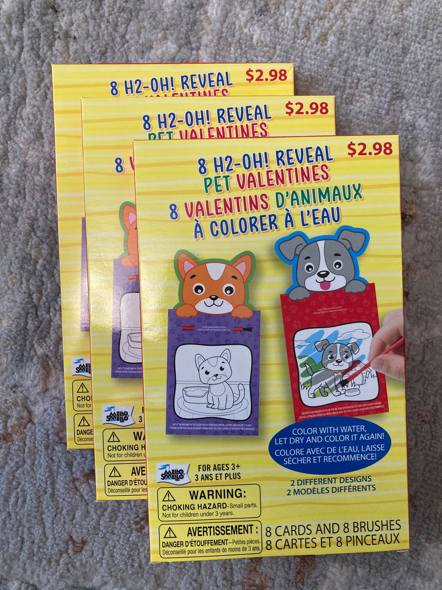 Description : 3 unopened boxes (8 per box, 24 valentines in total) Cute dog and cat water reveal design, each card comes with a paintbrush