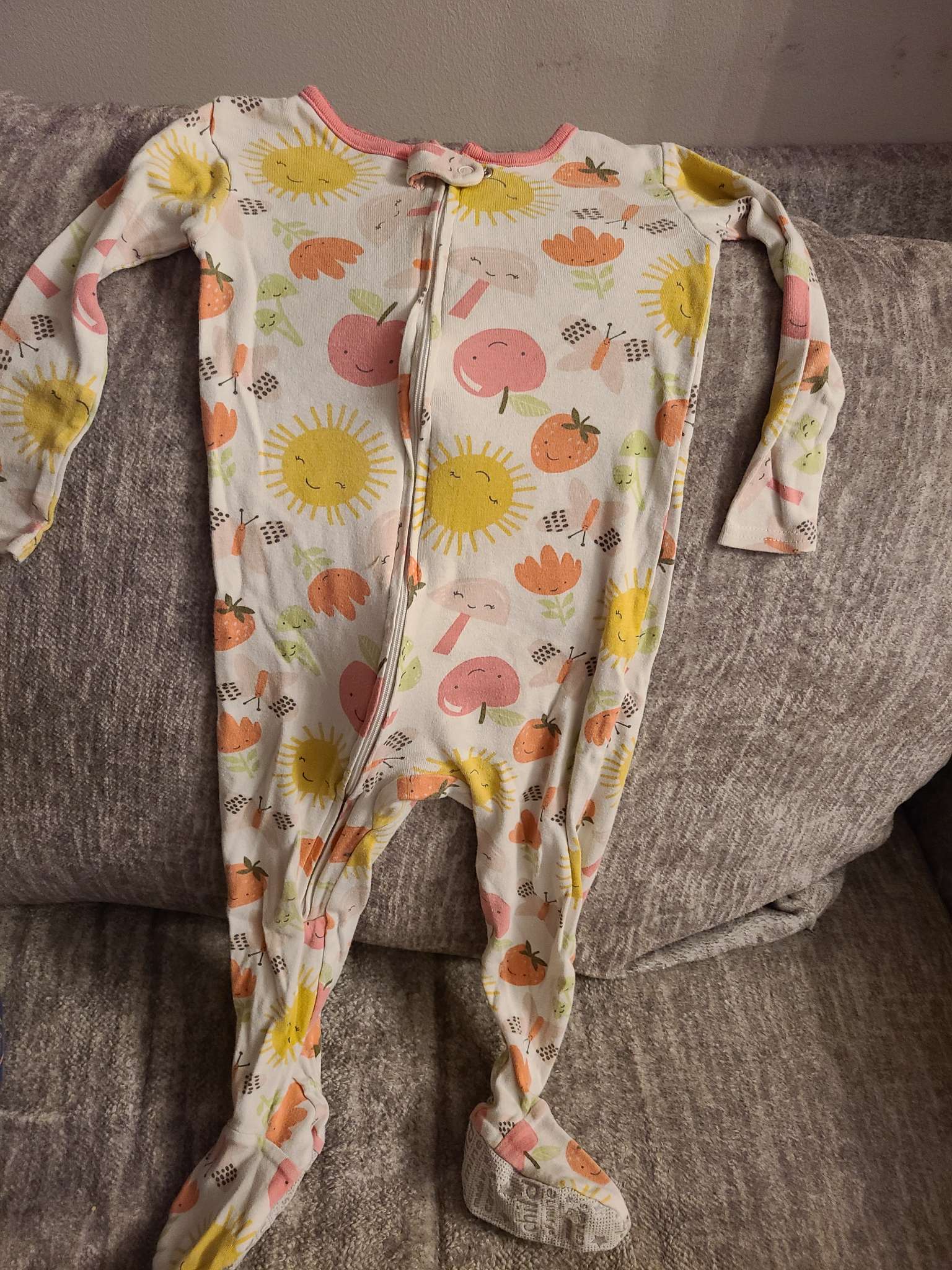Description : 2T girls sleepers.. one purple with unicorns (footless) and the other is white with fruit and sun's and flowers and footed