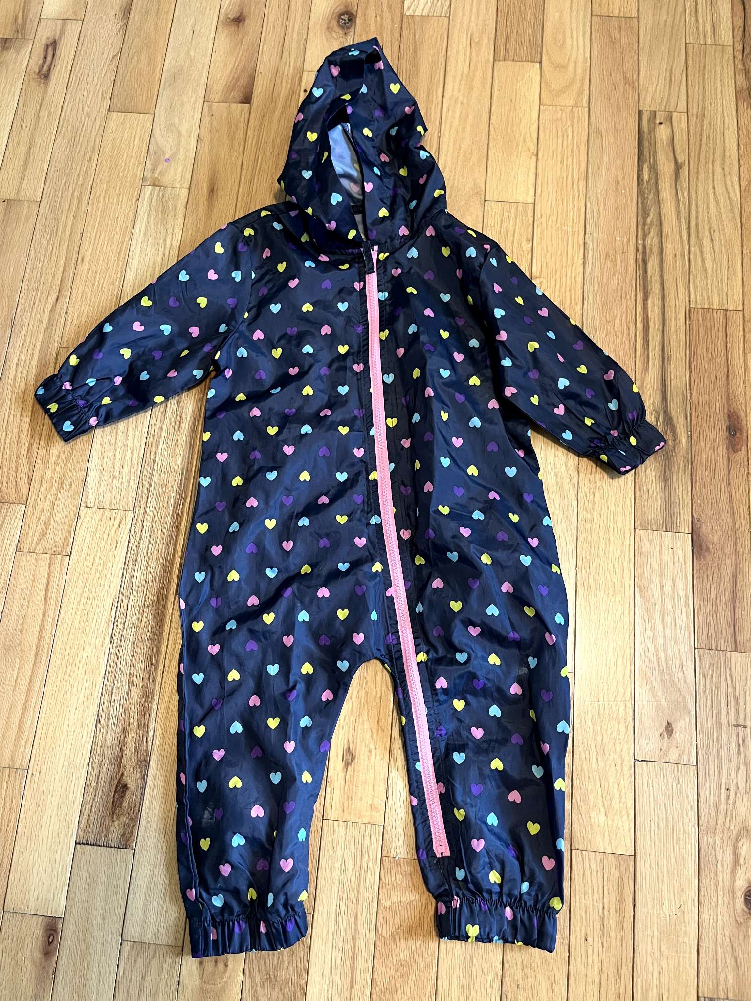 Description : 2T George Rainsuit One piece rainsuit with heart pattern EUC