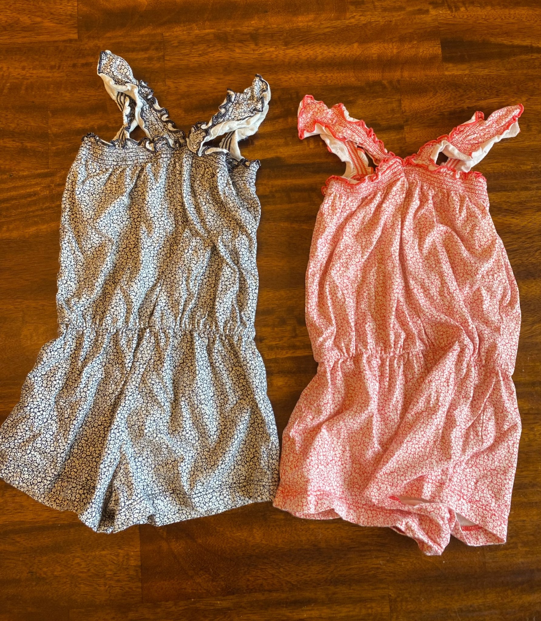 Description : Baby Gap Rompers x 2 Size 4T One white and red flowers, one blue and white flowers, no stains/holes