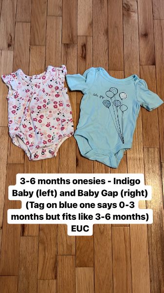 Description : 3-6 months Onesies - Indigo Baby floral and Baby Gap blue with balloons and puffed sleeves (tag says 0-3 months but fits like 3-6 months) EUC
