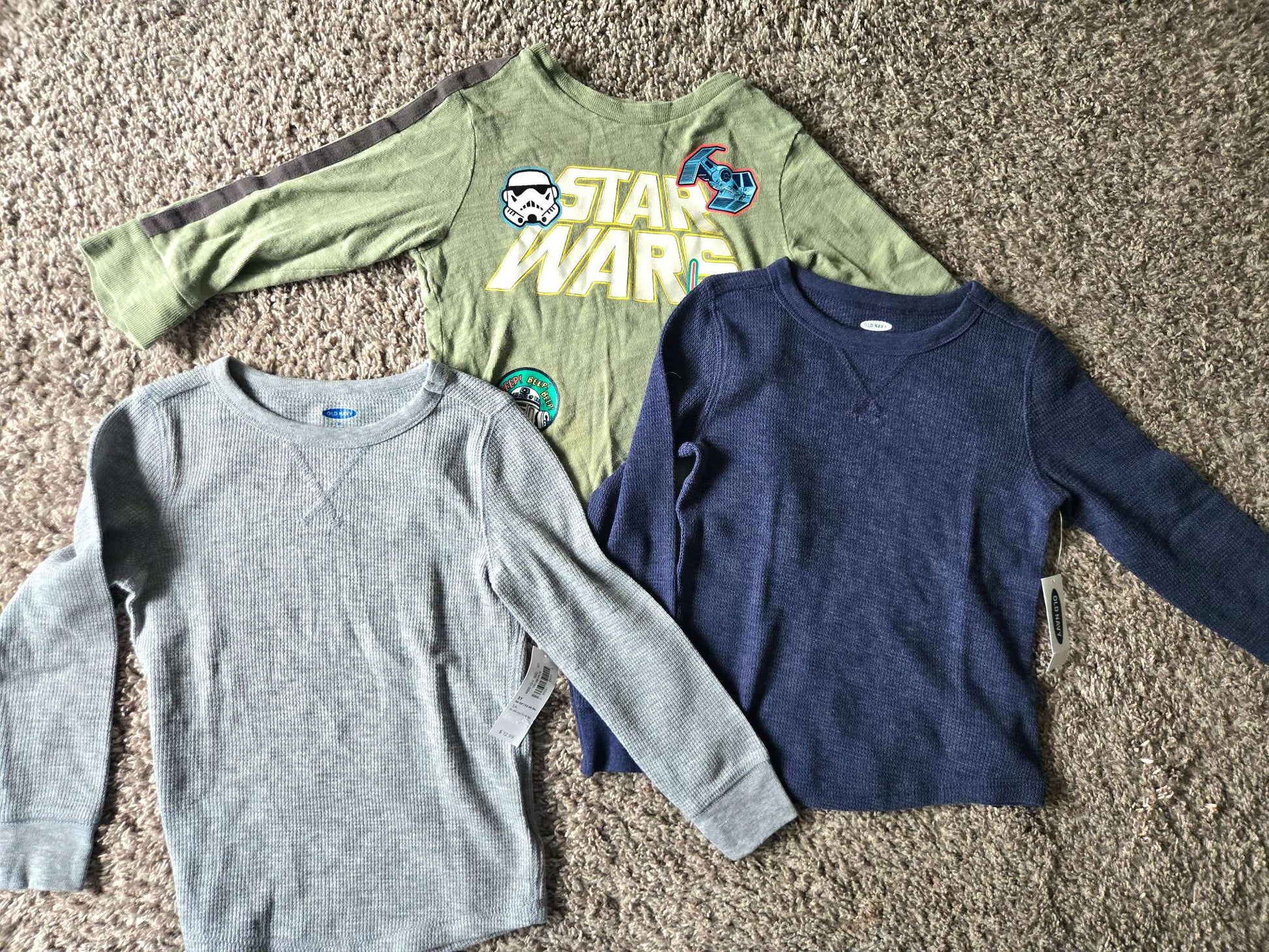 Description : 3 Long Sleeves Bundle 3T GAP and Old Navy 2 brand new old Navy (Each Retails $12.99) 1 VGUV GAP Star Wars