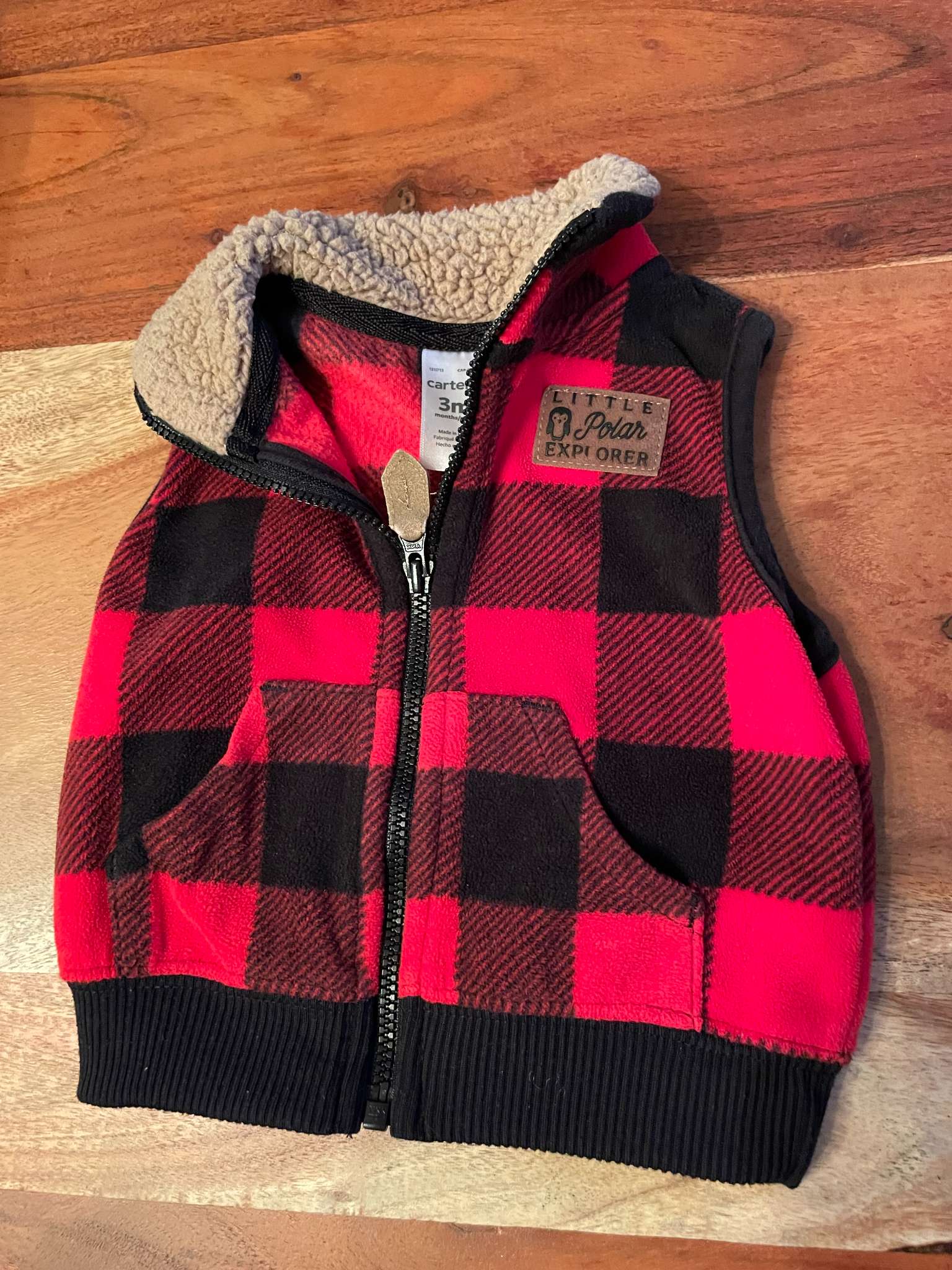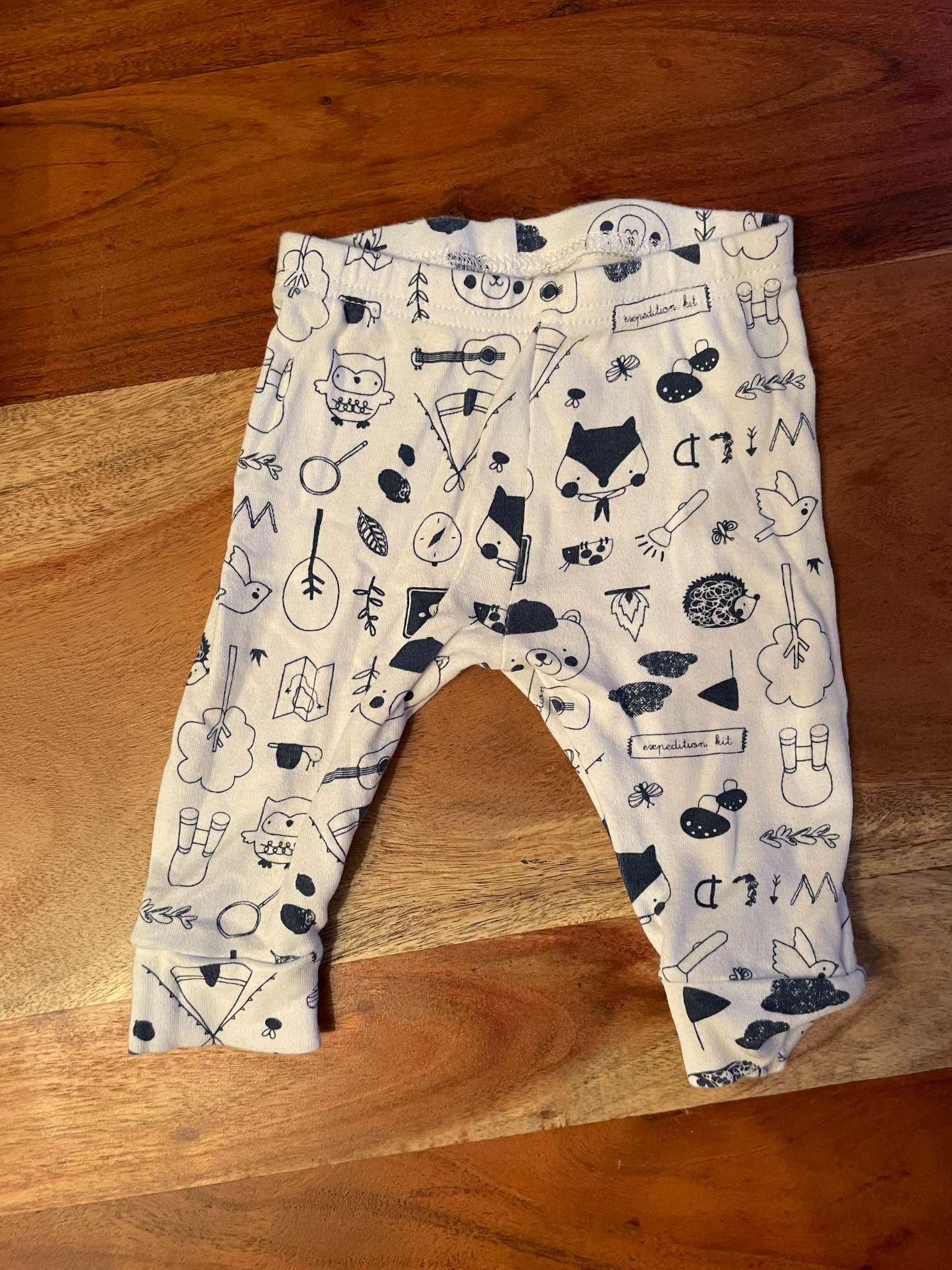 Description : 2 tuques 2 long sleeve onesies 1 pair of black coveralls 1 warm vest 4 pairs of pants (including 1 fleece) 1 t-shirt 8 pairs of socks 1 pair of sleep/scratch mittens (juddlies) Parker & Posie Slippers (these are the best baby slippers!!! Soft, warm & they stay on!) 2 footed pyjamas 1 Velcro Swaddle Sleep Sack (these are a life saver! - velcro is all in LIKE NEW condition as this was a spare) Most like new, some gently used.