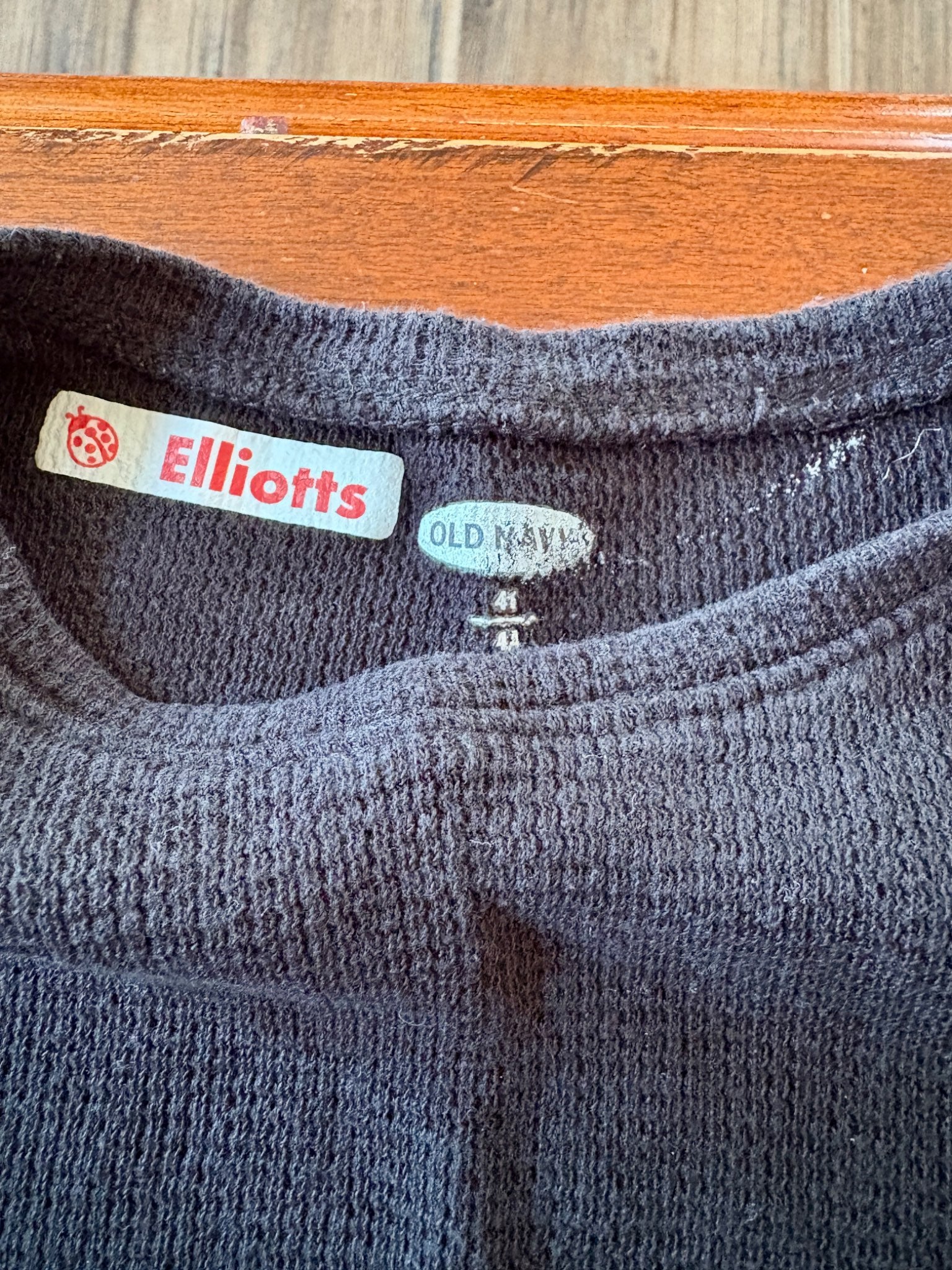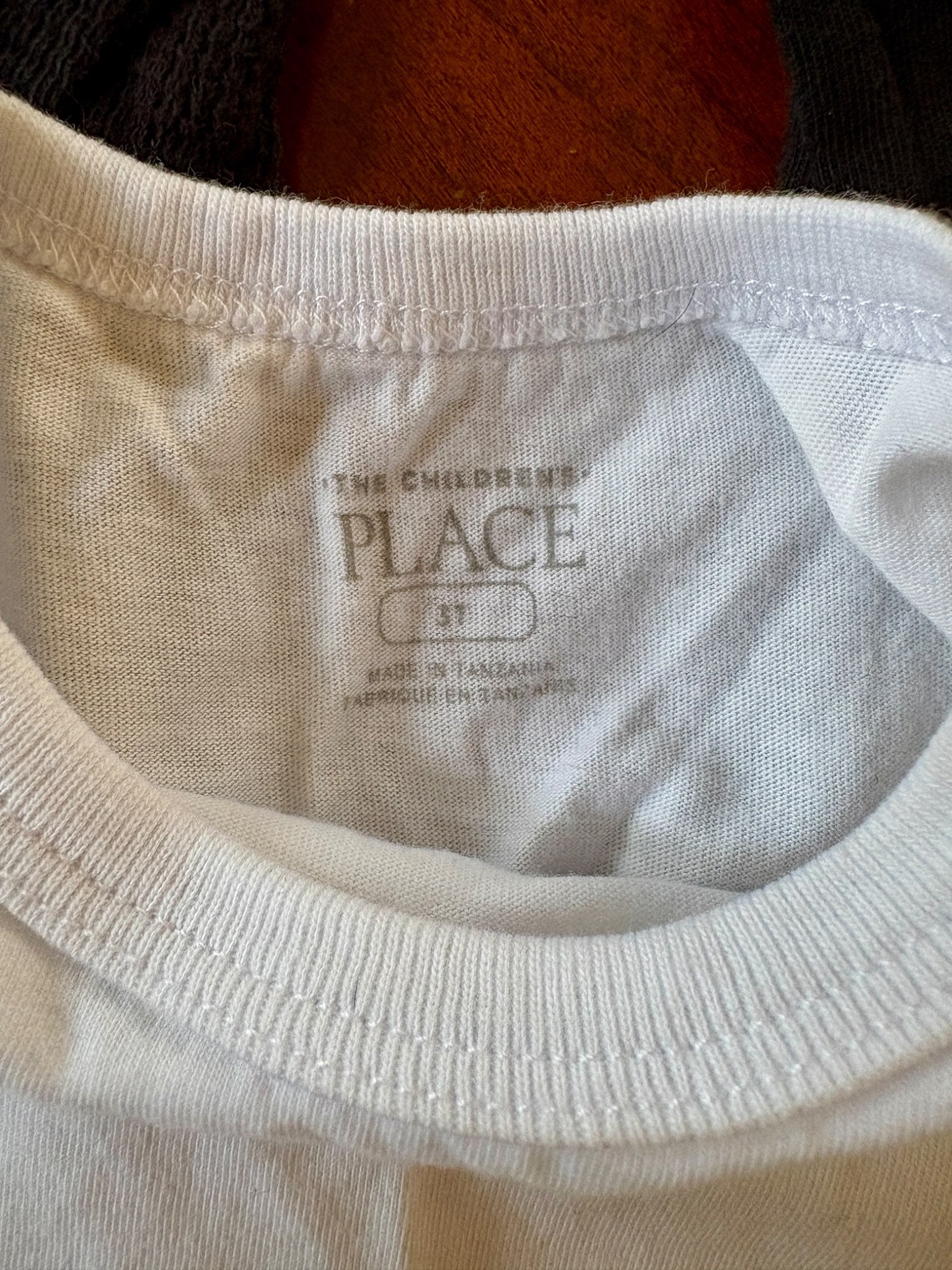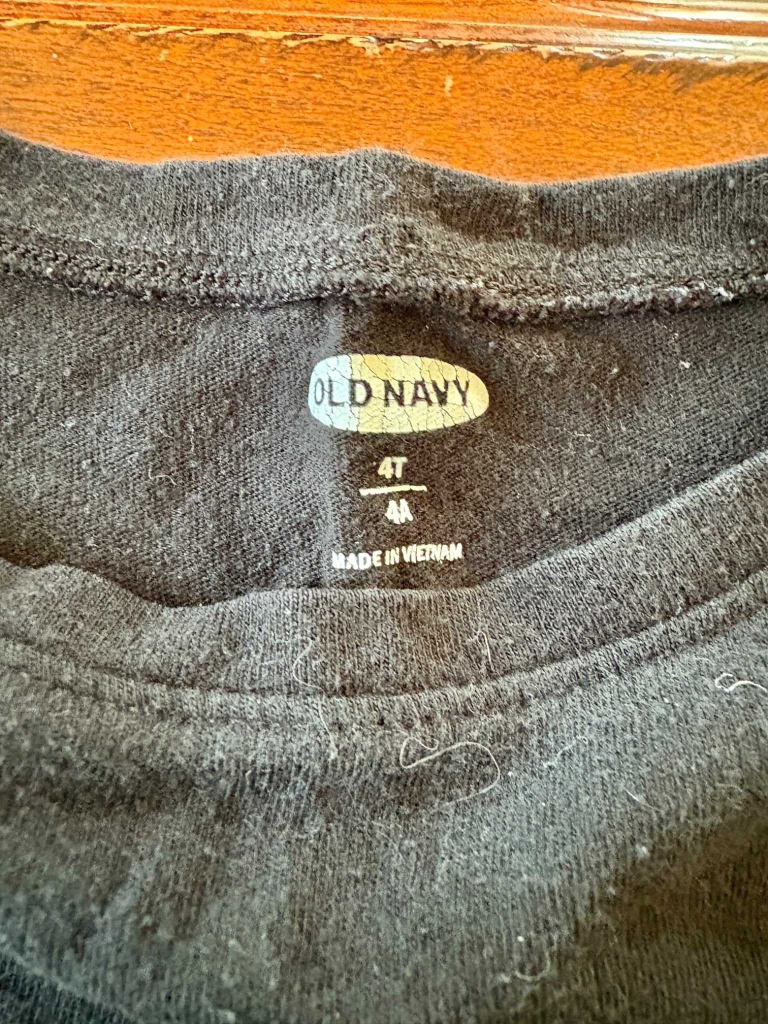 Description : EUC gender neutral 4T long sleeve shirts, black waffle knit from Old Navy, has iron on name tag and smudged label on inside but not visible when worn. Plain black long sleeve from Old Navy. White is from the Childrens Place and labelled as 3T but fits like 4T and is the same size as the black 4T shirts. Pet friendly smoke free home