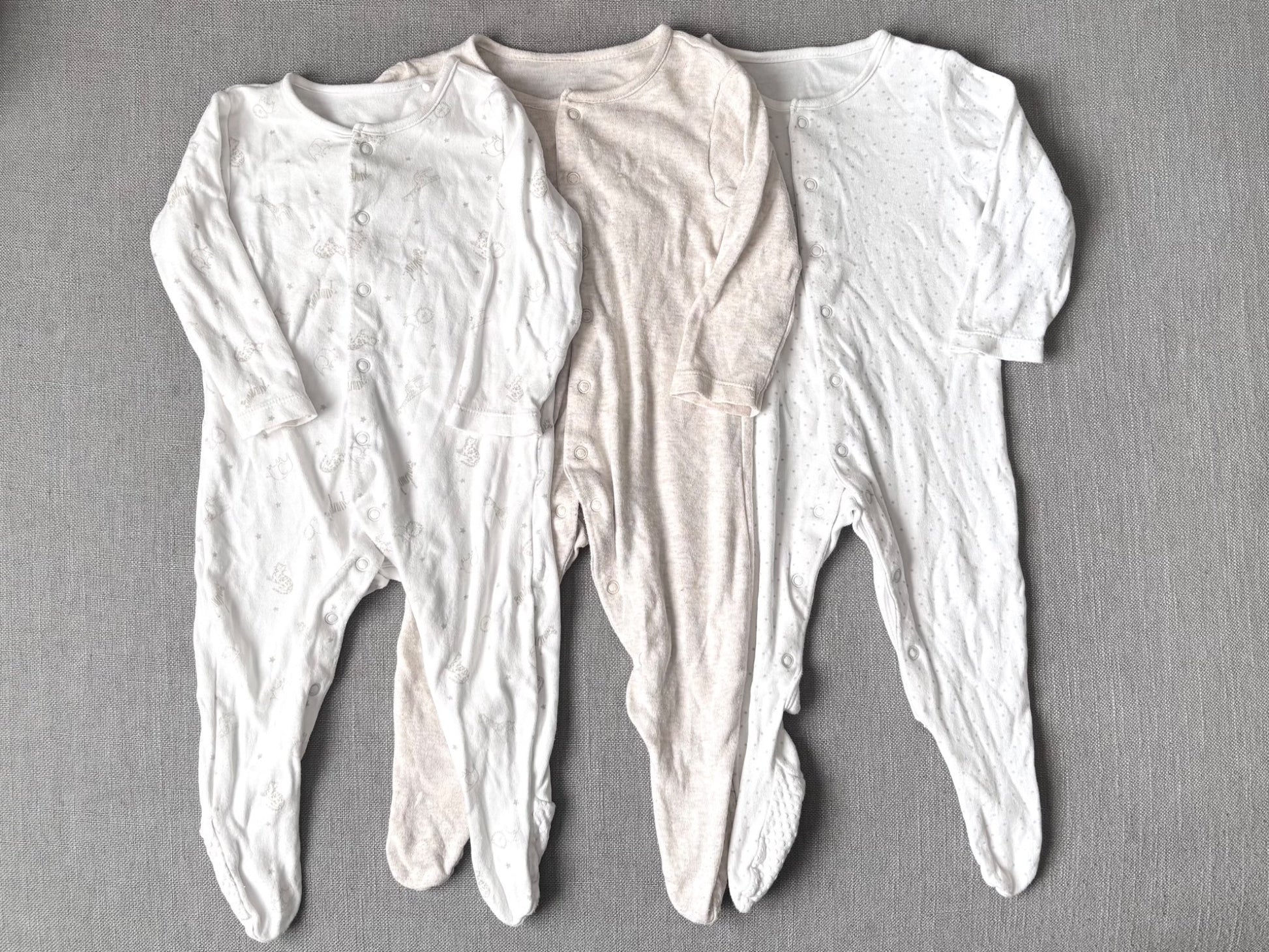 3 x neutral pyjamas, 6 - 9 months, Kids 9 Month (6-9M)