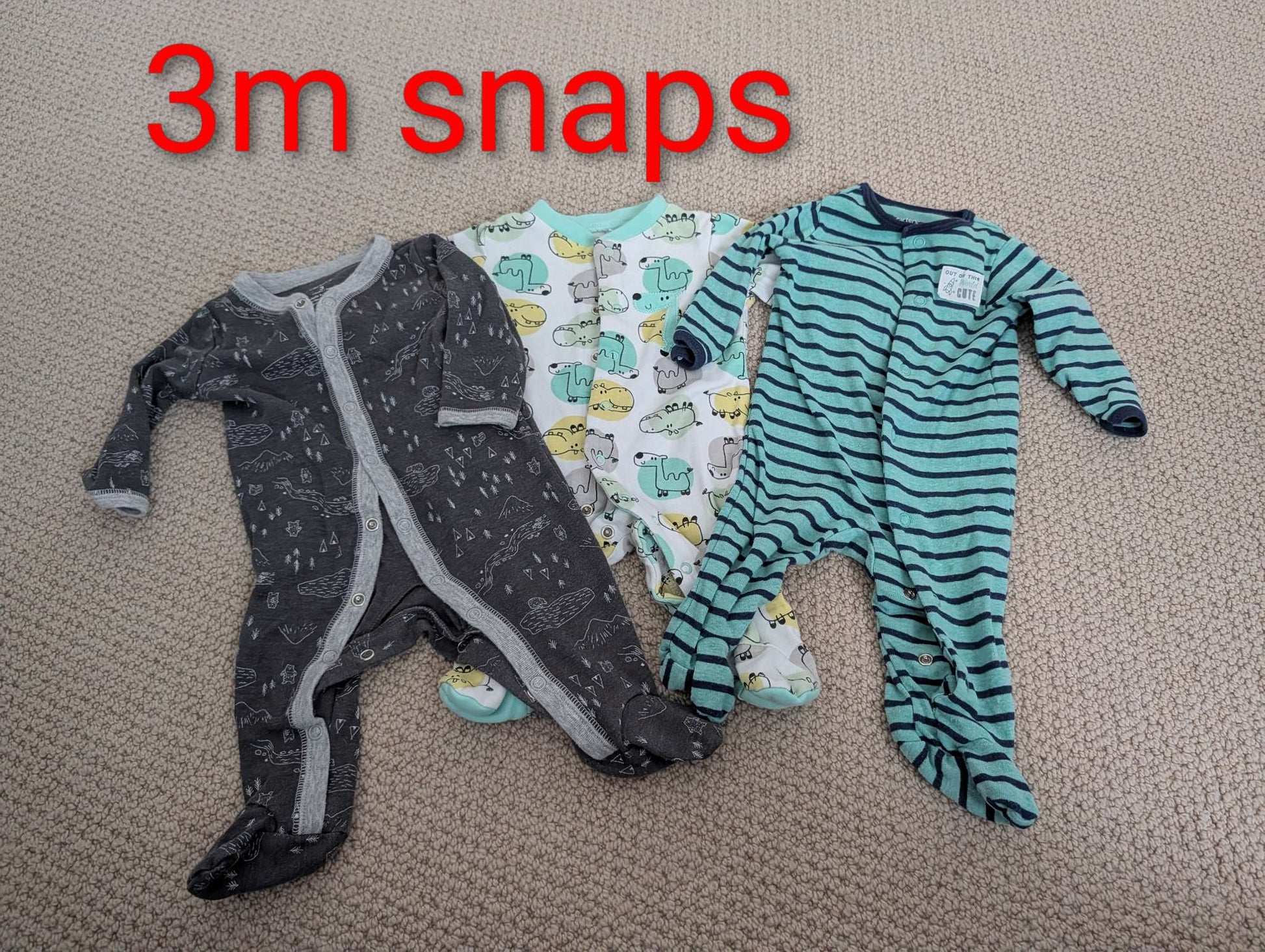 3m woodland, Hippo, stripe sleepers, Kids 3 Month (0-3M)