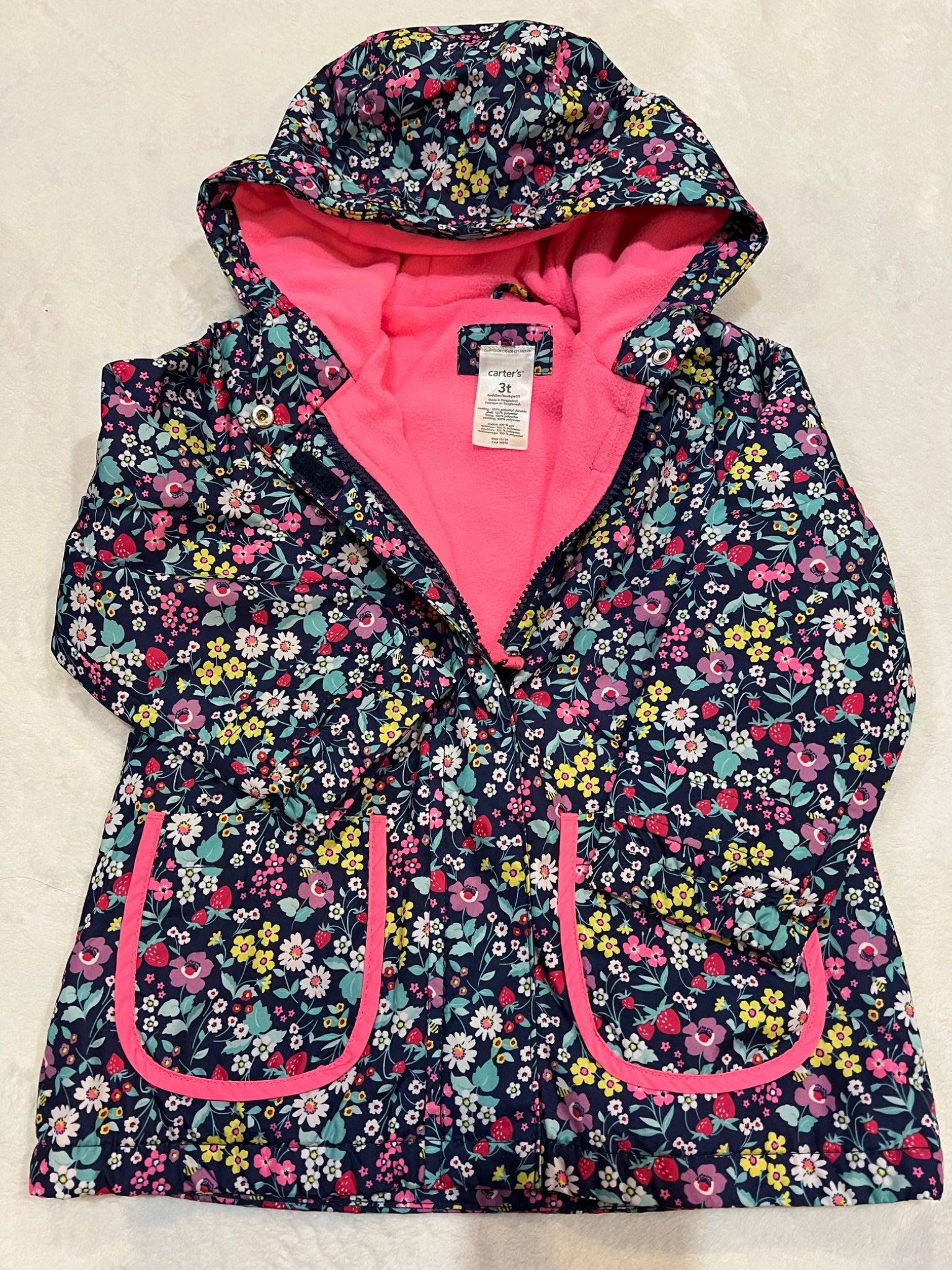 3T carters mid weight fleece lined jacket- navy with flowers , Kids 3T