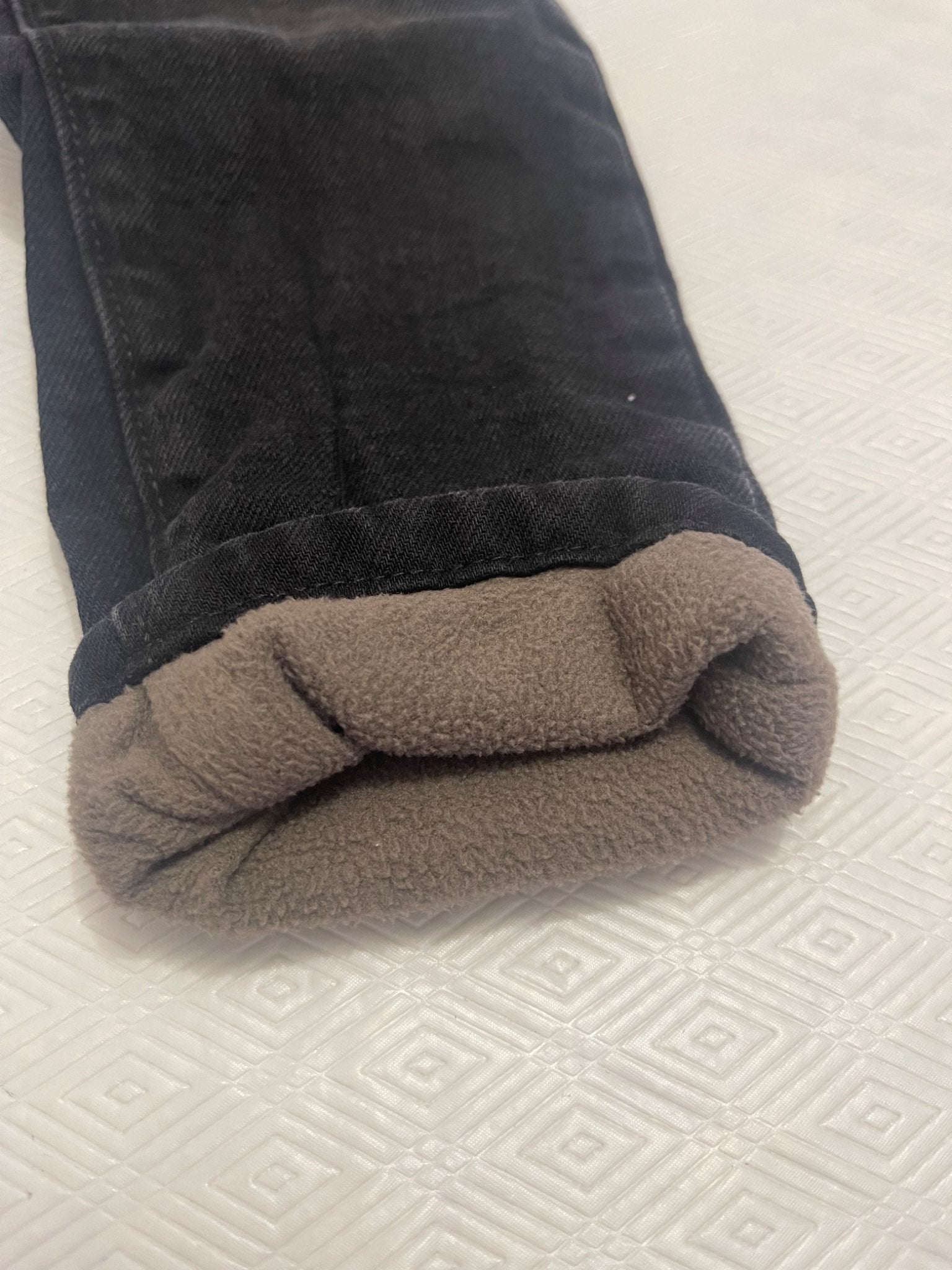 Description : Black denim pants with fleece lining from Old Navy. Brown denim pants from Joe Fresh