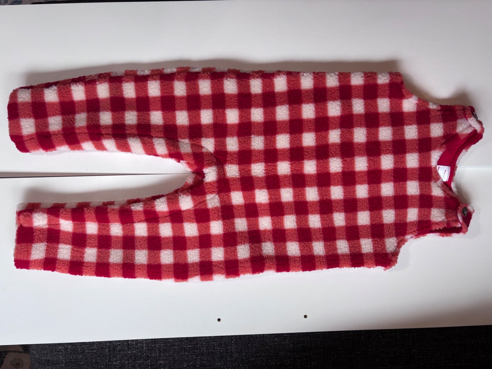 3T Hanna Anderson fleece red checkers overalls , Kids 3T
