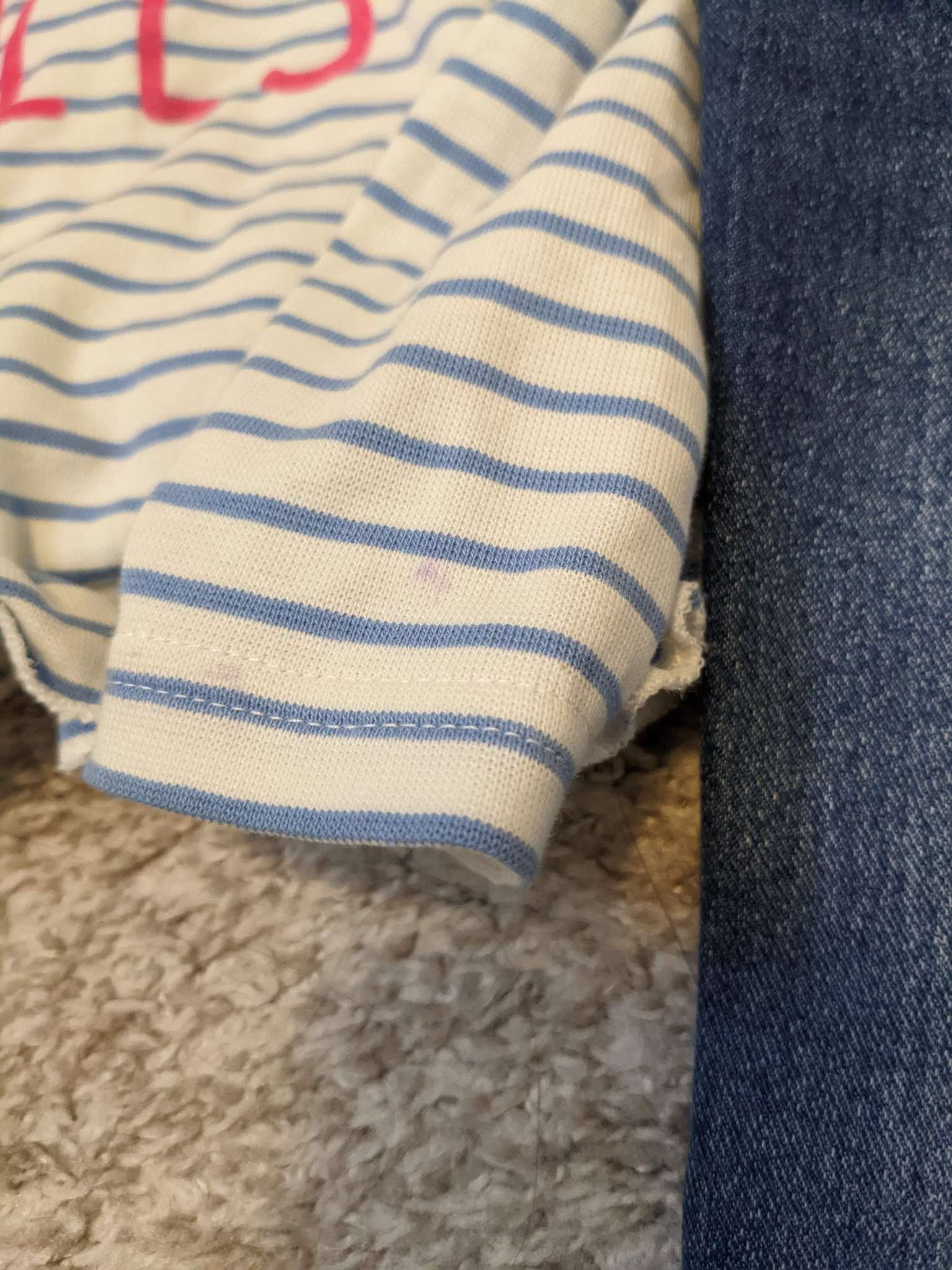 Description : Slight mark on sleeve of shirt otherwise green shape. Shirt is m&s and pants is old navy