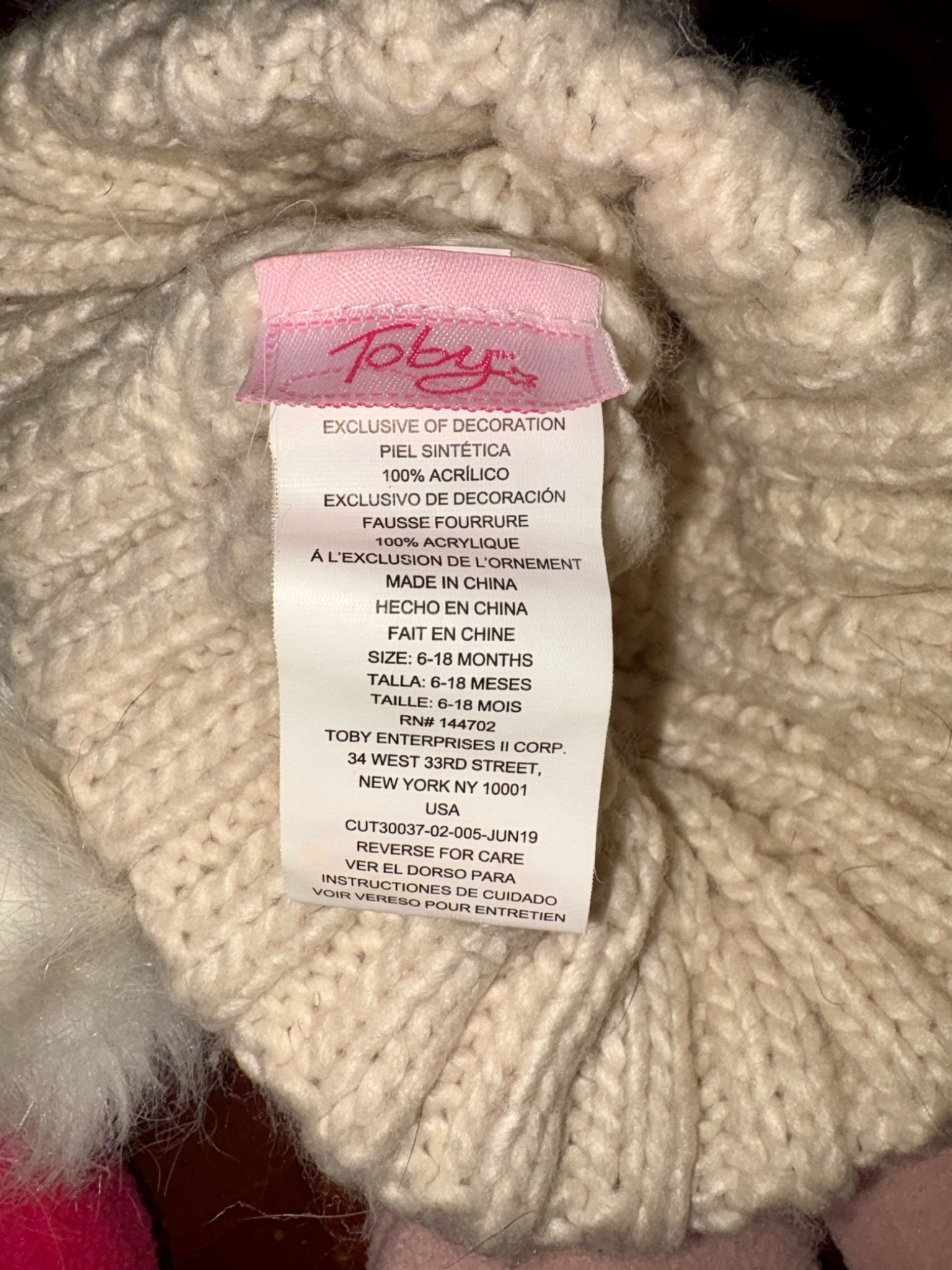 Description : EUC toddler girls toques and mittens. Pink toque has fleece lining and white is knit, mittens are fleece with thick lining and Velcro strap to tighten wrists, very warm and soft. Fits 6-18 months Pet friendly smoke free home