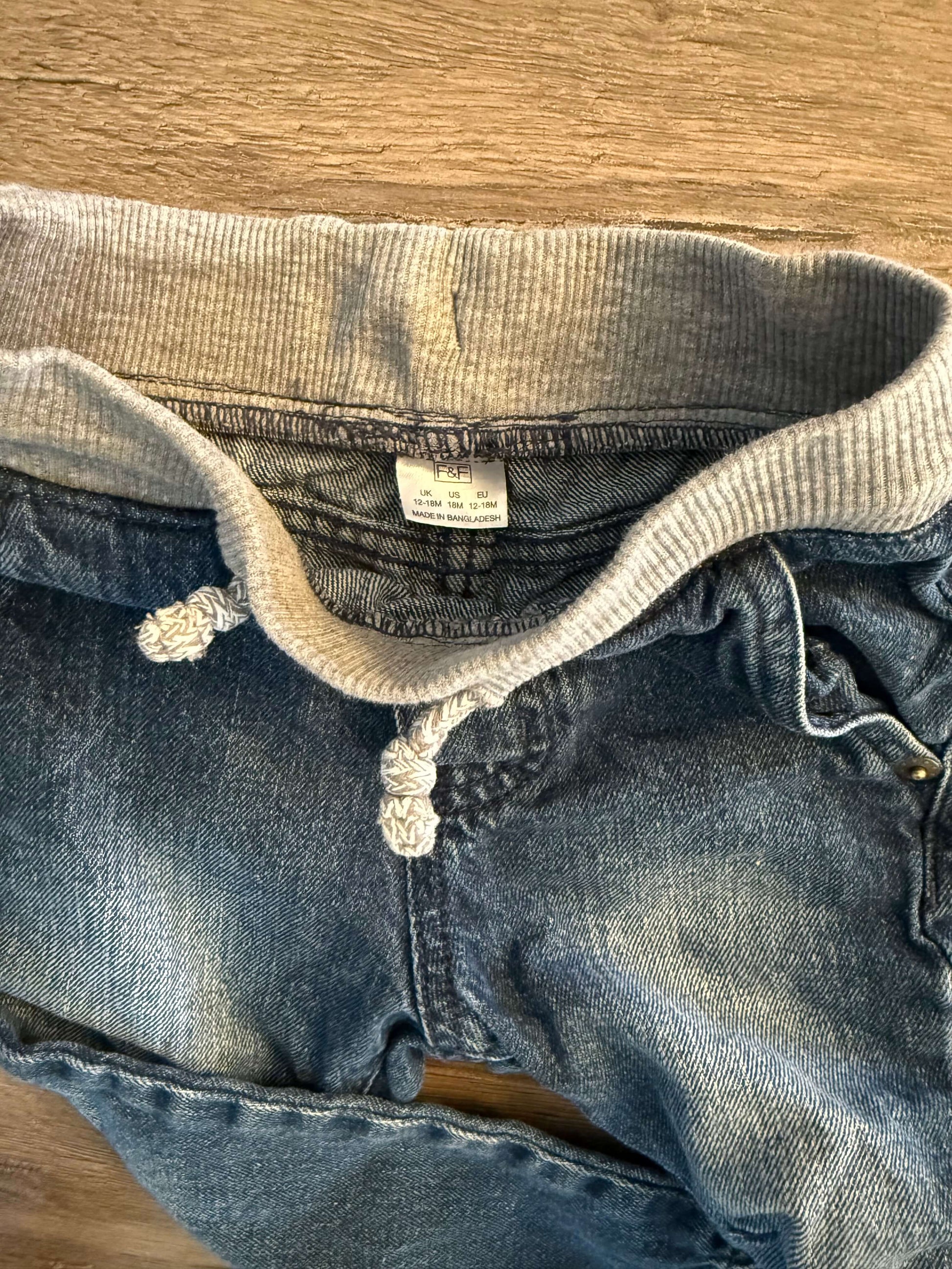 #2) F&F Brand jeans with grey waistband/drawstring, UK 12-18m sizing.