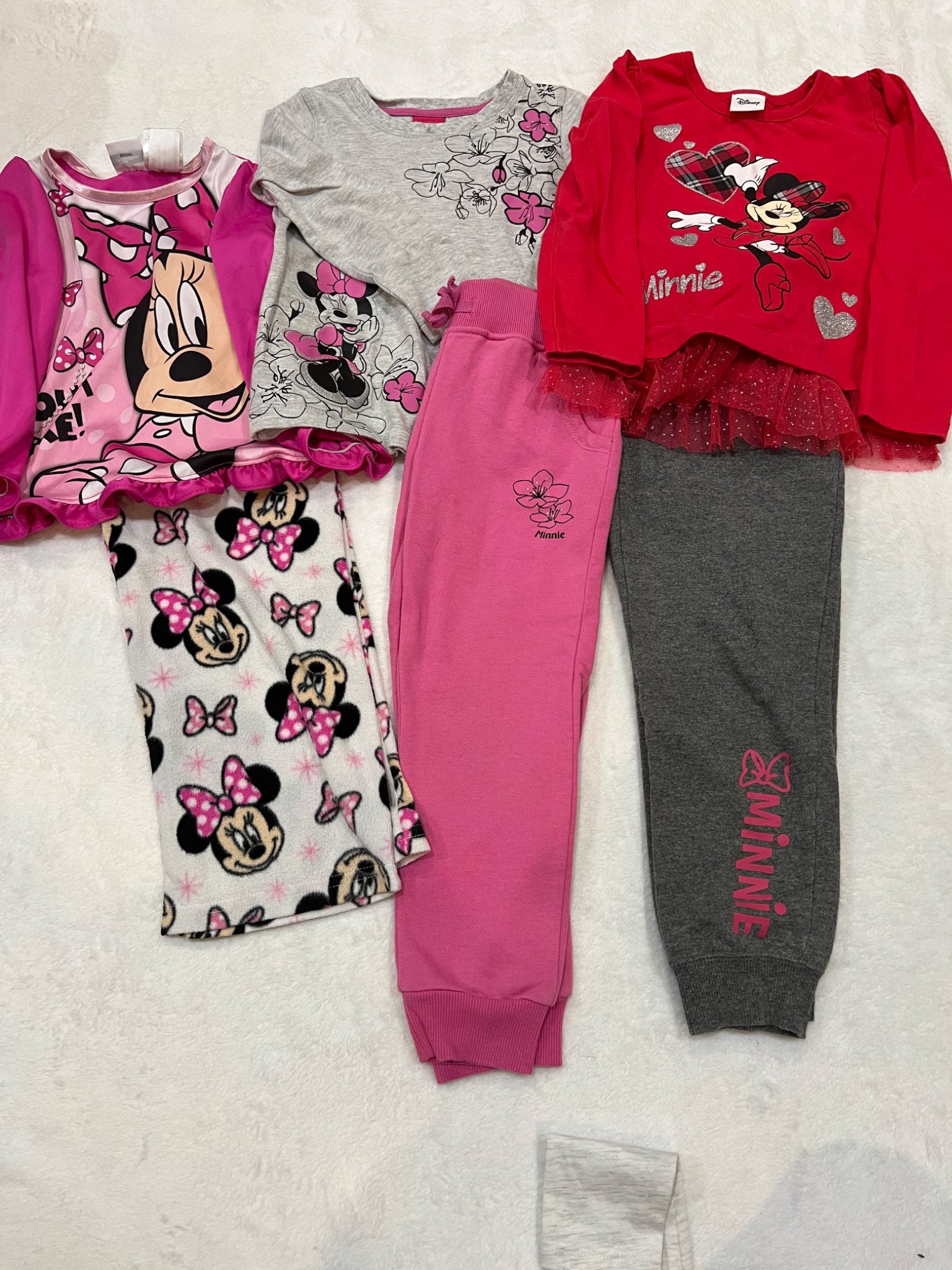 Description : For the Minnie Mouse lover 2 sweat pants 2 long sleeve tops 1 pj set - pj top has tiny pilling (for material) see photo