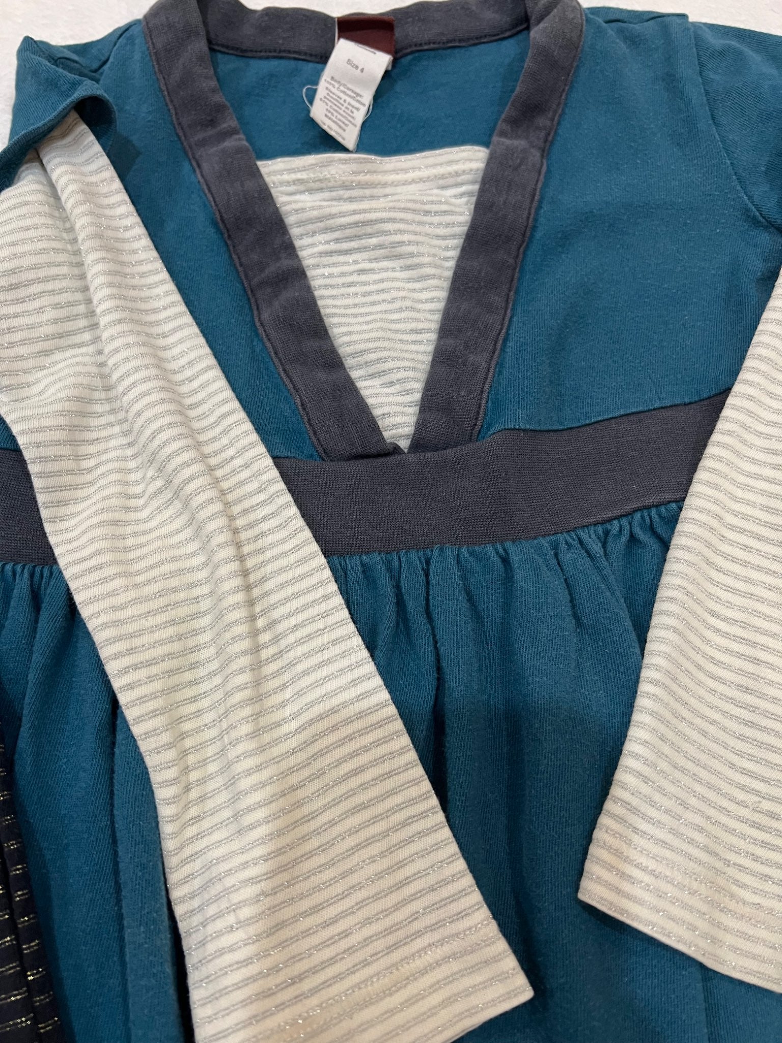 Description : 1 dress - teal color has some wash color fade (dark) 2 leggings with sparkle stripes great condition 1 top great condition embroidery details