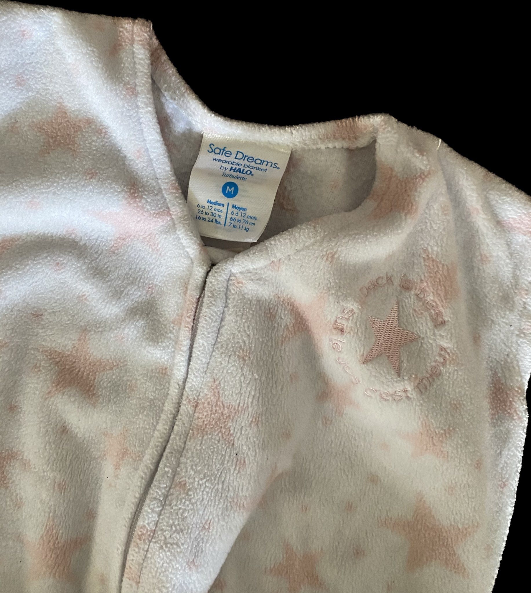 Description : Halo sleep sack with pink stars, size medium or 6-12 months (26-30” or 16-24 lbs)