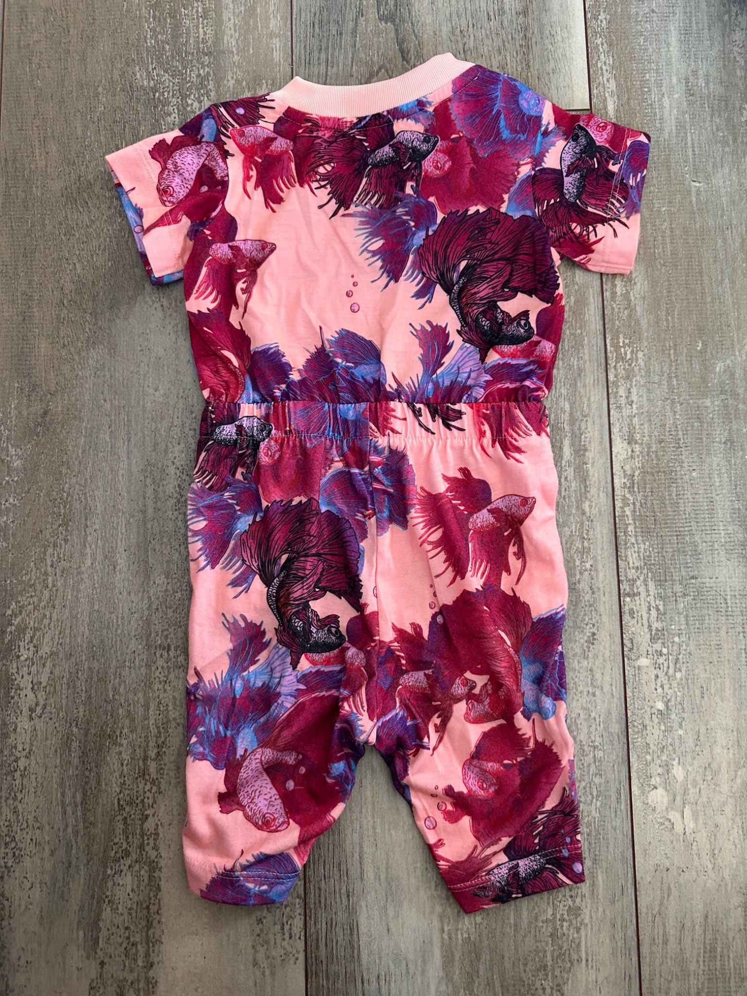 Description : Onesie with button to increase neck size, snaps along legs. Purple crib shoes with box.