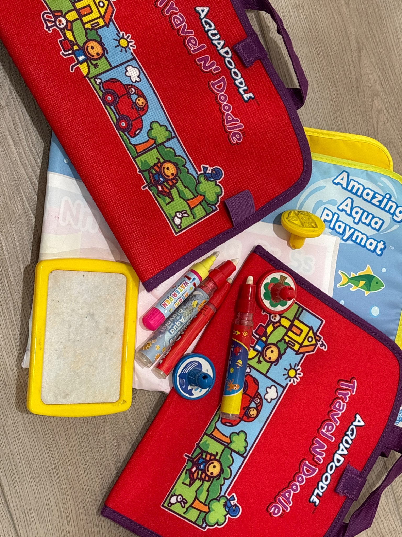 Description : Two travel size, one large mat, 4 refillable pens, 3 stamps and one stamp pad