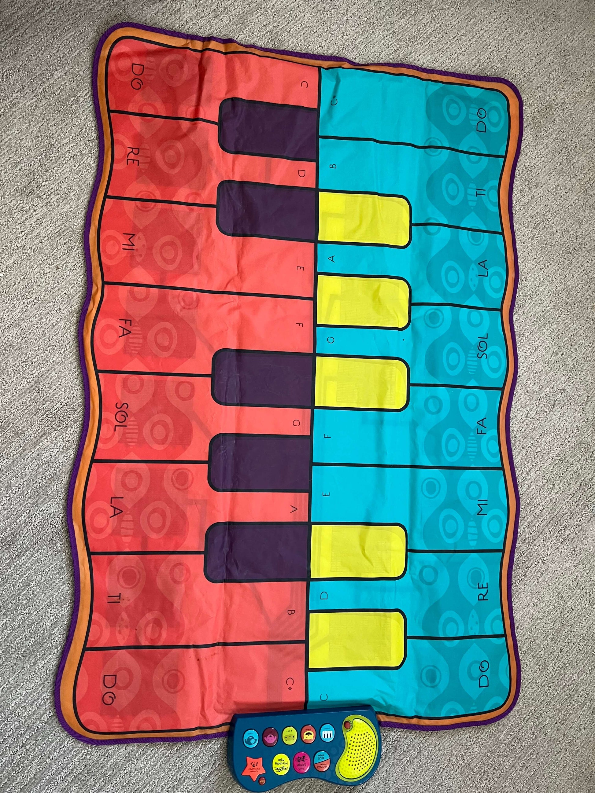 Description : Warm up your feet and start playing piano with the Boogie Woogie Mat from B.toys! This colorful floor mat lets little ones hit up to four notes simultaneously, and it's a great way for them to stay active, develop gross motor skills, and improve their physical development. Kids can try to beat the tempo with a friend, or make it a challenge and dance solo! The piano mat includes 4 great ways to play: Fun Songs, Melody Mix, Play with a Friend, and Animal Party Mix. Not to mention, children can add in more fun sounds with the colorful Meow, Ribbit, Baa, Woof, and Piano buttons! Easily set up a dance floor anywhere, then fold it up for a neat and tidy cleanup. It's a boogie party and everyone's invited!