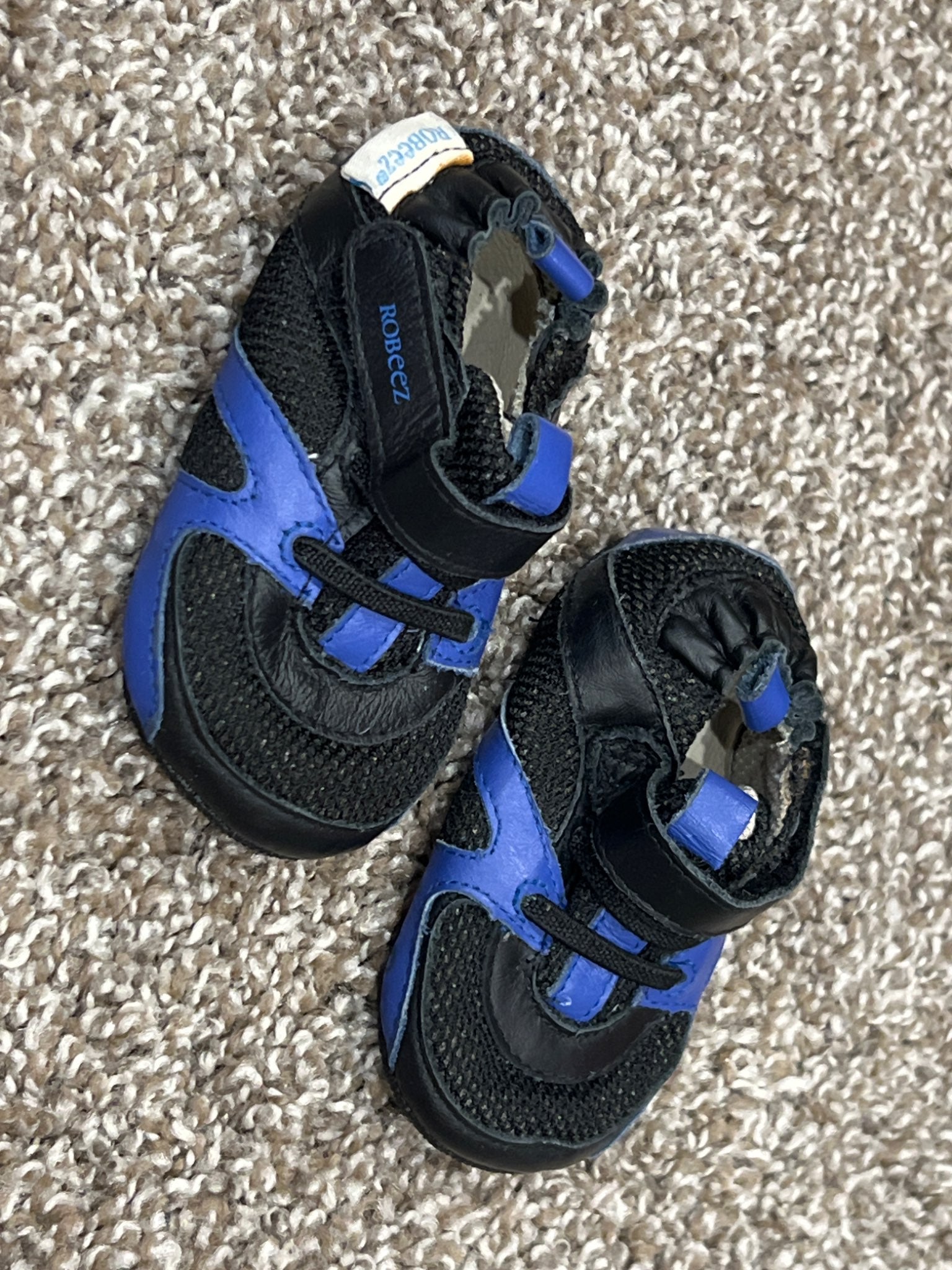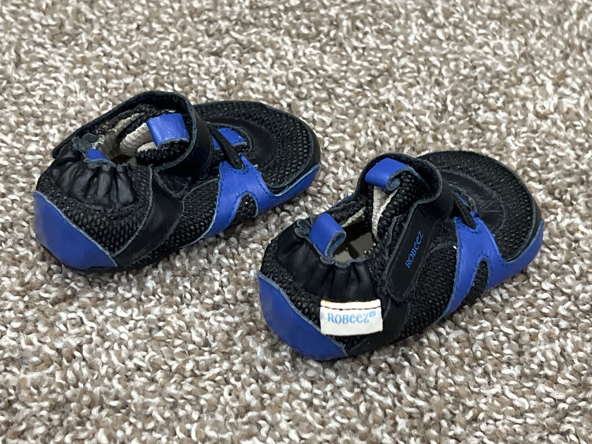 Baby Boys, Black/Blue Robeez Sneaker Crib Shoes, size 2, VGUC, Shoes 2 (Baby: 0-12 mth)