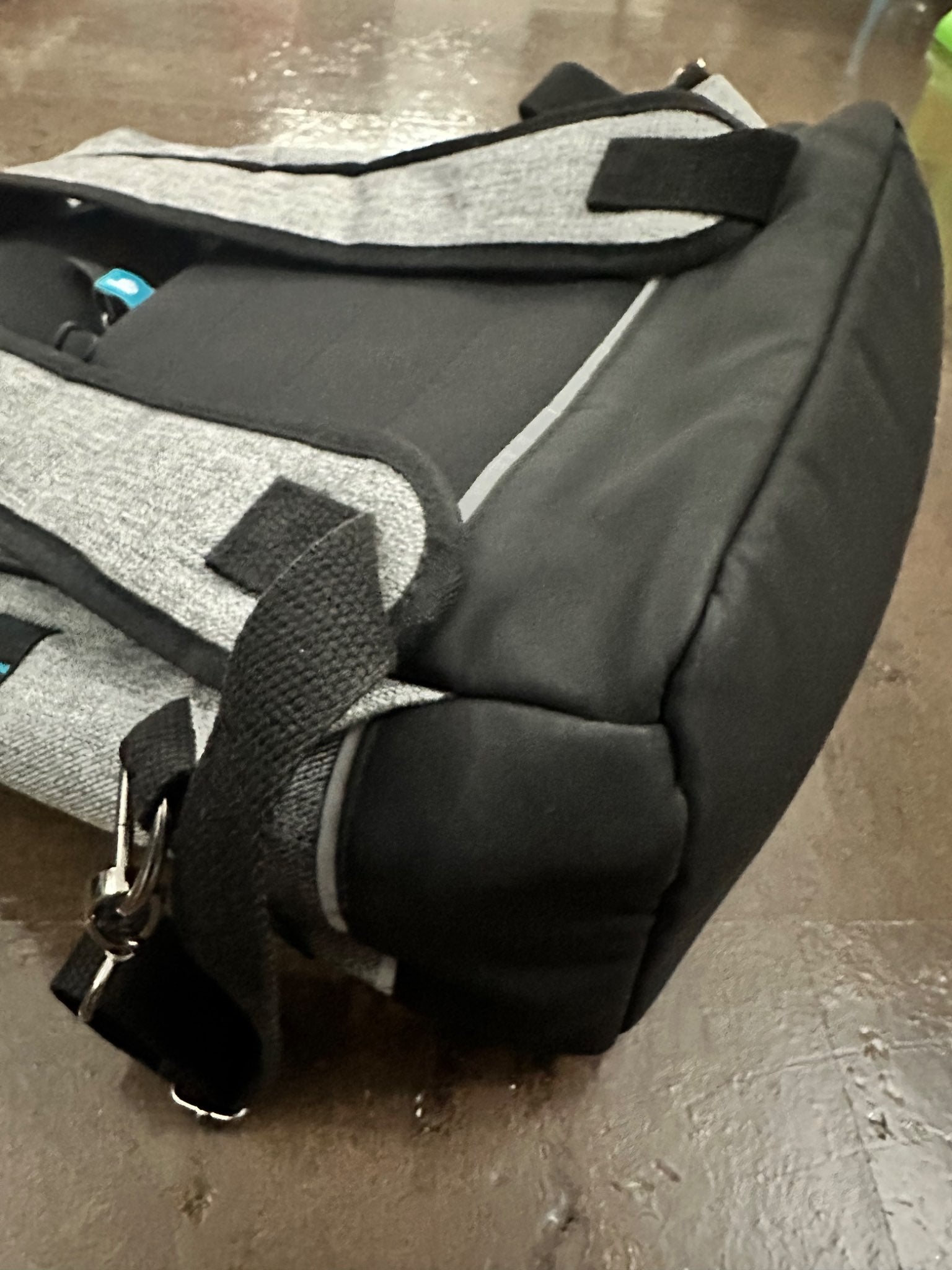 Description : Excellent condition. What's included: backpack with removable changing pad, terry cloth towel, pacifier pouch, stroller hooks, built-in keychain, and several pockets to keep your baby essentials organized Comfortable to carry: weight is evenly distributed while shoulder straps are easily adjustable for a perfect fit and excellent comfort Expandable size: adjustable roll top and insulated compartment increase the size of the bag to provide even more storage and fit baby bottles, lunch box, wipes, baby diapers Designed for parents: perfect for both moms & dads combining trendy unisex fashion and practical innovative engineering: easy access front-zippered changing mat