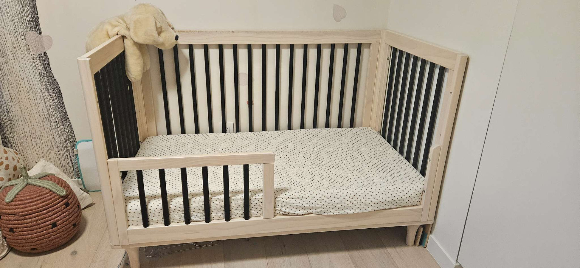 Description : With a unique 3-in-1 design, the Babyletto Lolly Crib can transform from a crib into a daybed into a toddler bed with ease. It features gently contoured corners and an eye-catching two-tone finish. Plus spindles and feet show off the natural grain of New Zealand Pine Wood. Designed for modern nurseries, the crib also includes a toddler rail for effortless conversion into a toddler bed. GREENGUARD Gold Certification Babyletto Lolly Washed Natural & Black Wood 3-in-1 Convertible Baby Crib with Toddler Bed Conversion Kit35.25"Hheight53.75"Wwidth30.25"DdepthMeasurements are in inches.89.54Hheight136.52Wwidth76.83Ddepthcm