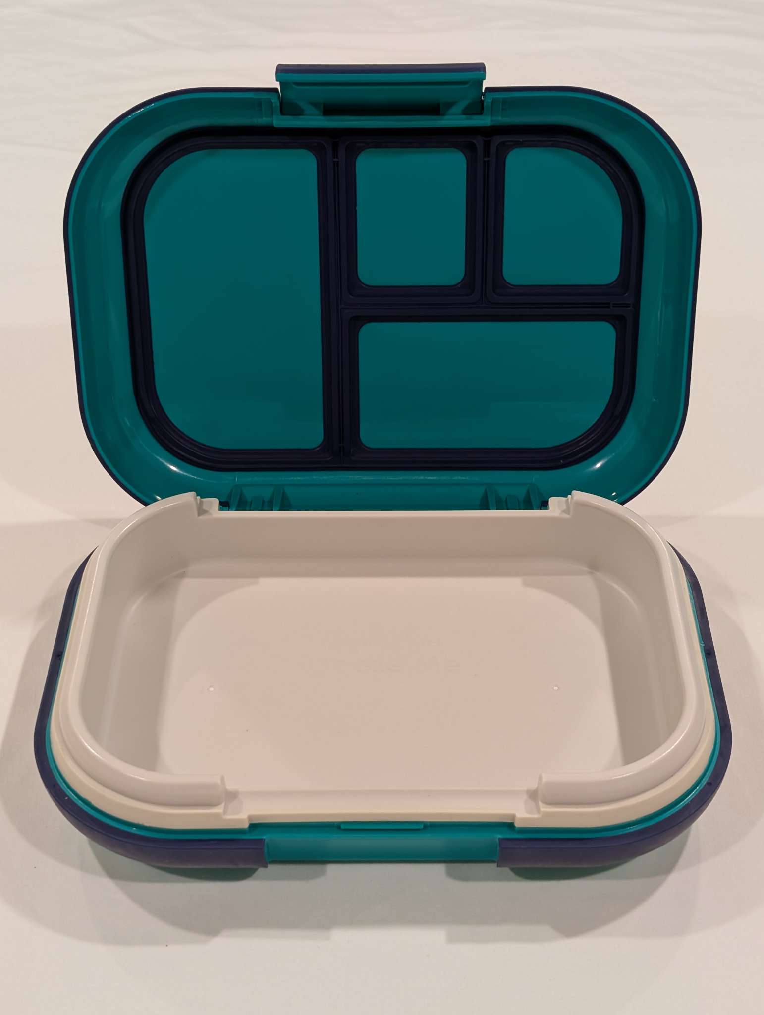 Description : 4 compartments, removable icepack underneath, very secure seal, easy to clean, dishwasher safe, tray is microwave safe Minimal wear and tear to item, scratch noted in picture on exterior