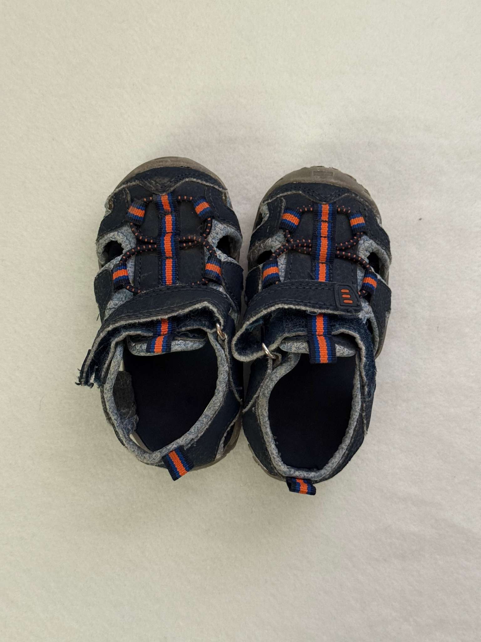 Description : Great, sturdy sandals for your toddler that falls all the time. The brand wore off the label so I'm not certain which one it is.