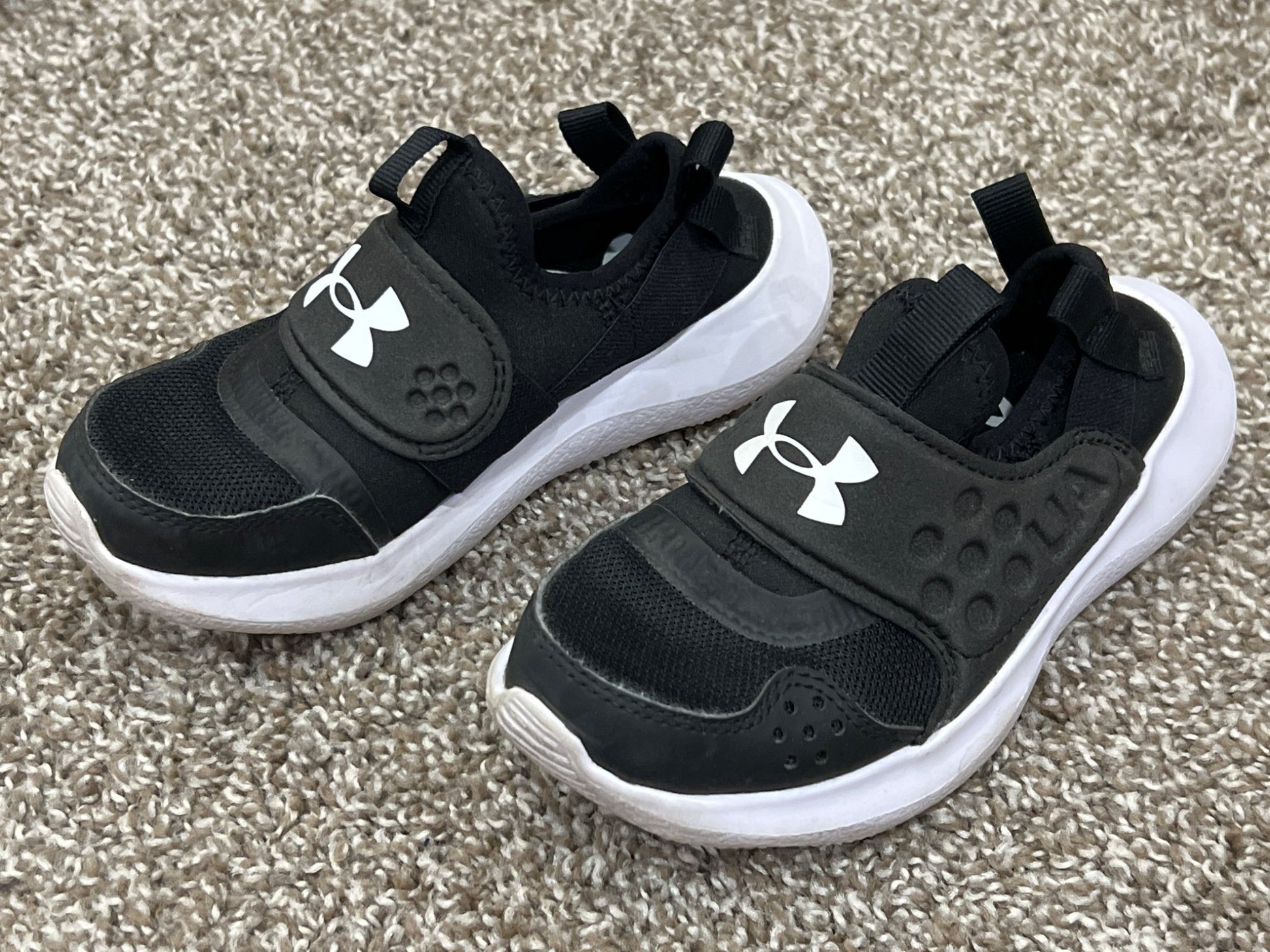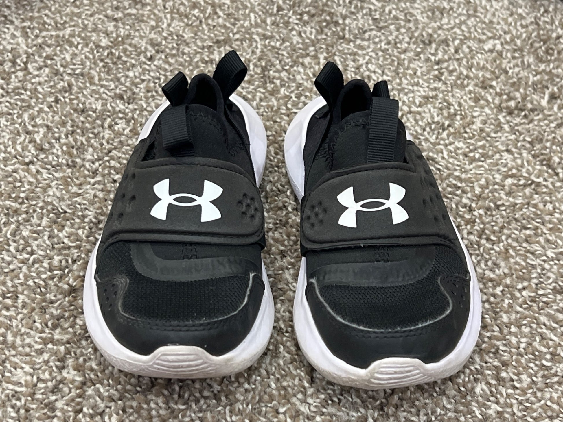 Boys, Black, Under Armour Running Shoes Sneakers, size 11, VGUC, Shoes 11 (Toddler:2-4yr)