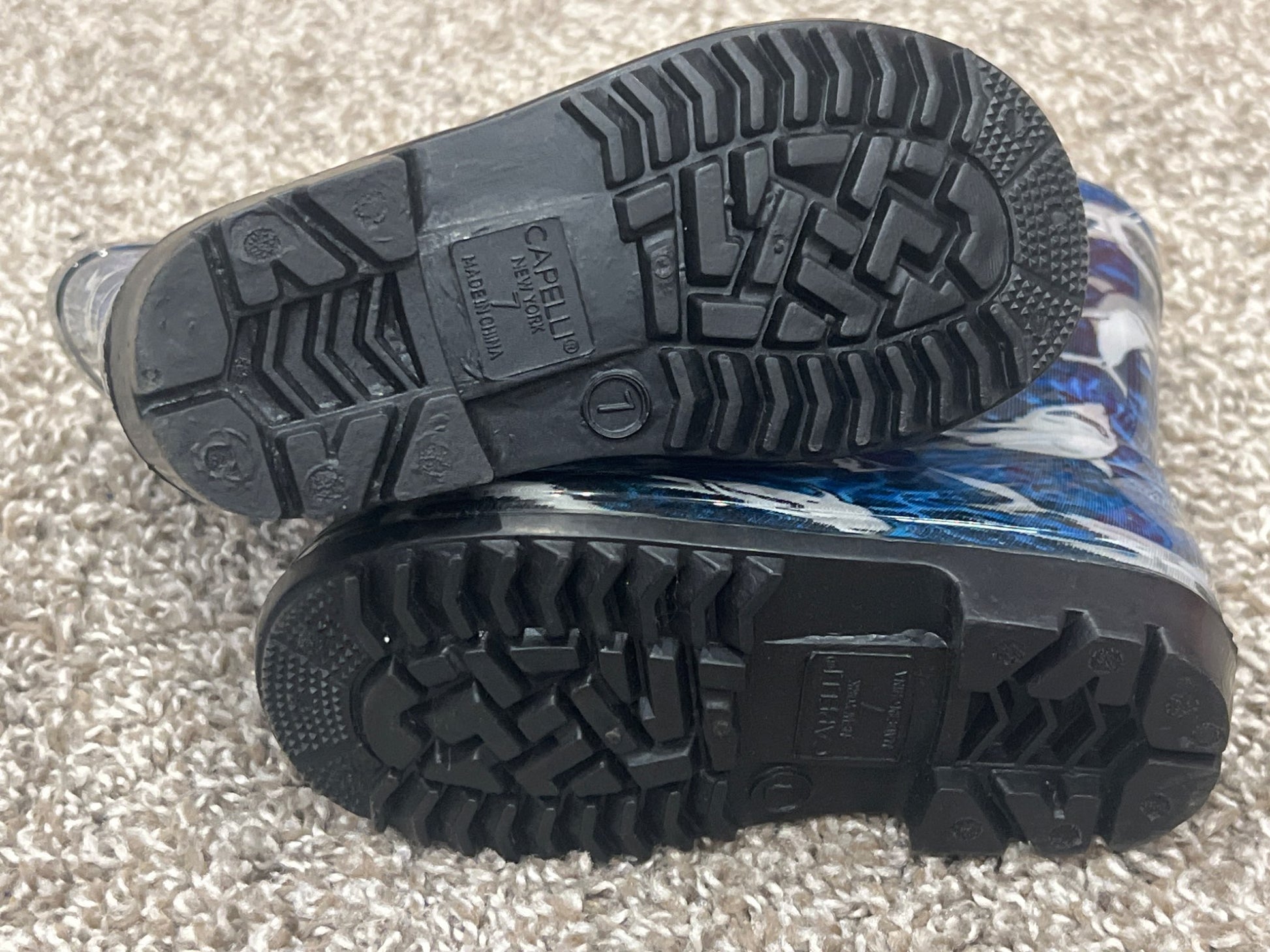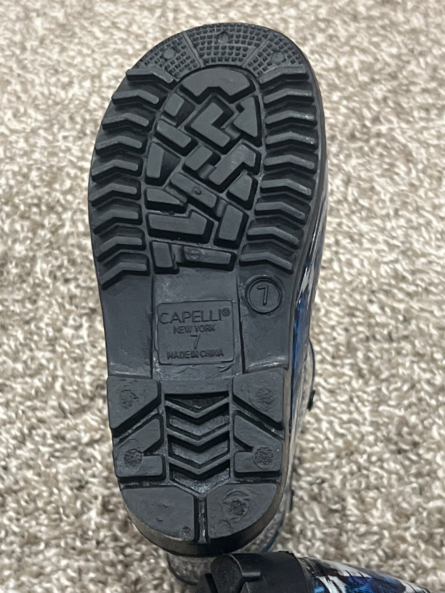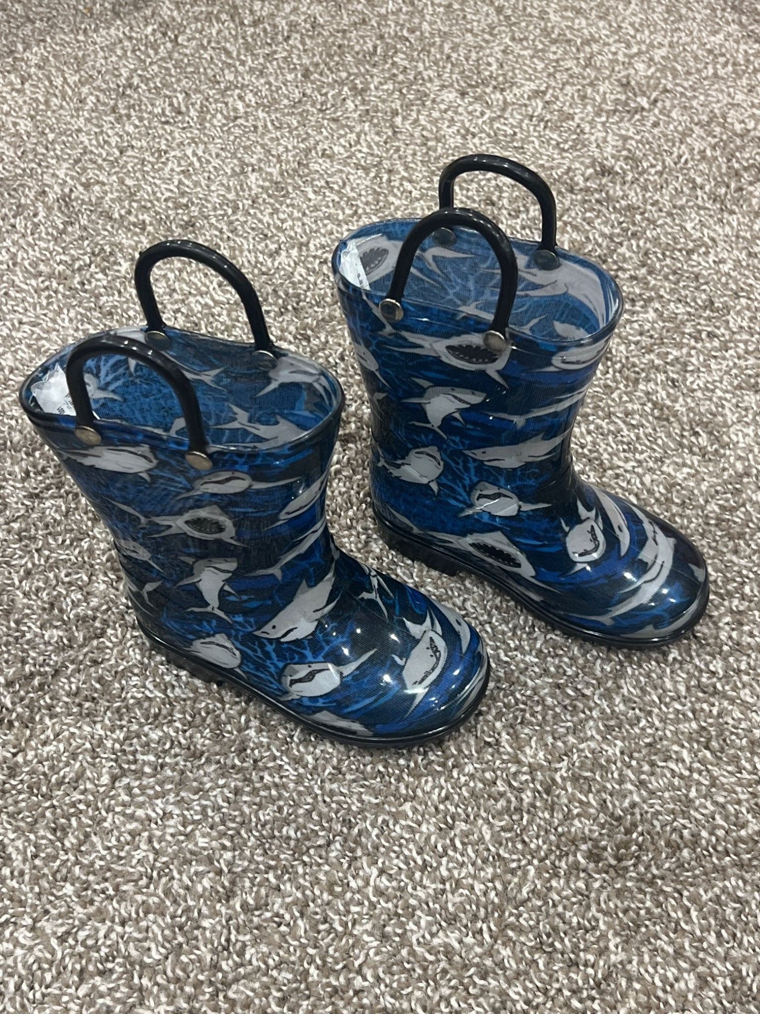 Description : Toddler boys size 7 Capelli Rubber boots, Shark theme.