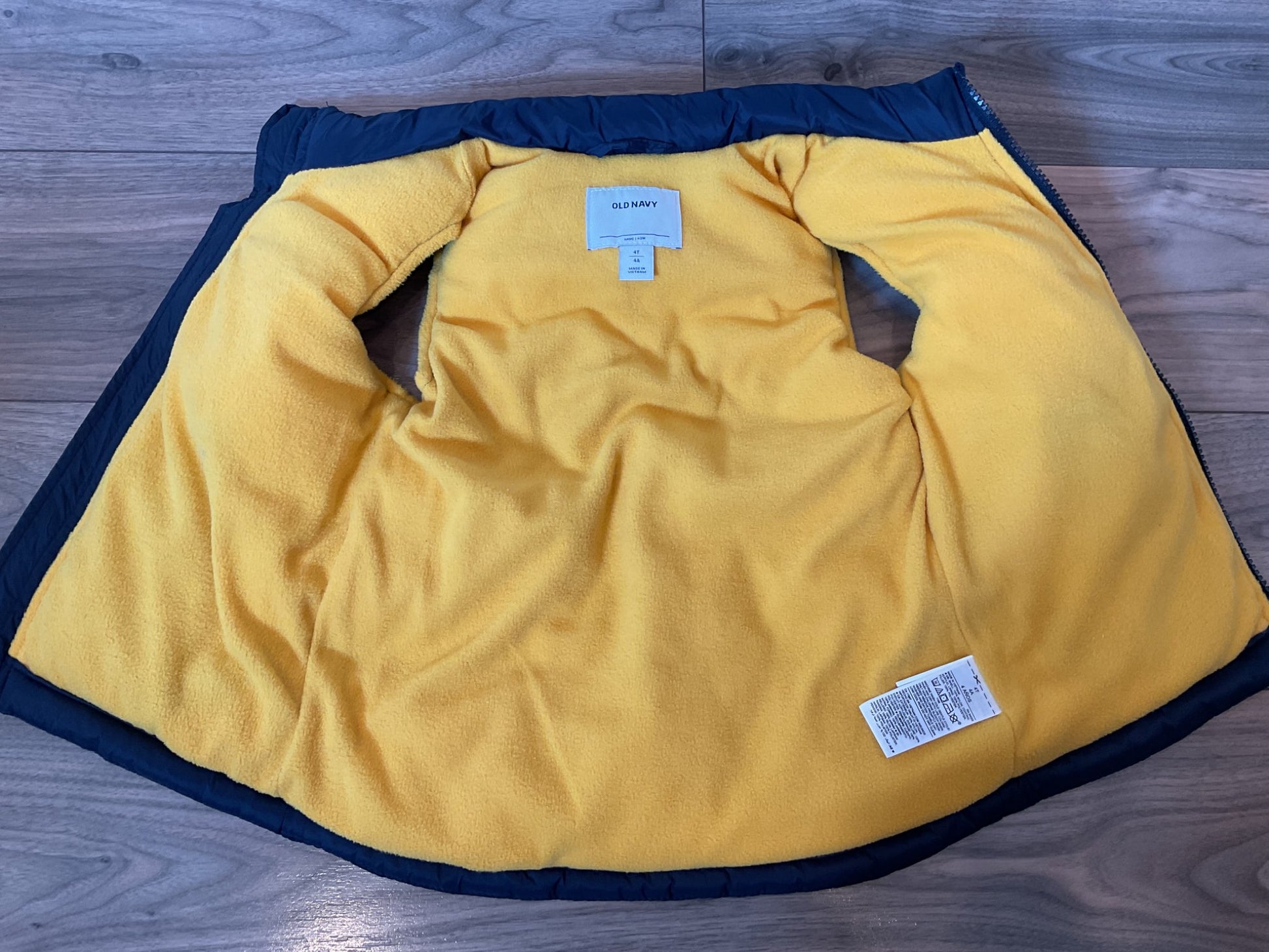 Description : Old Navy Size 4 navy blue and yellow matching flannel shirt and vest. Flannel is button up with pockets. Navy vest is lined with yellow fleece. Super cute set.