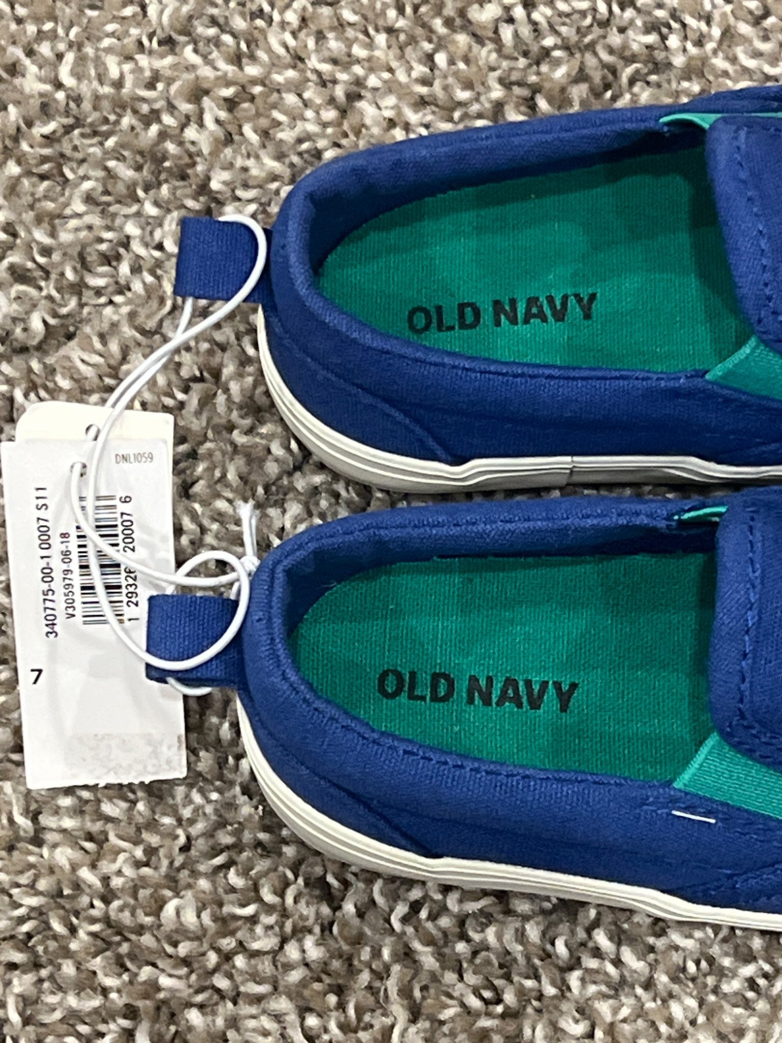 Description : BNWT, Boys, Old Navy brand, blue, Monster shoes, size 7.