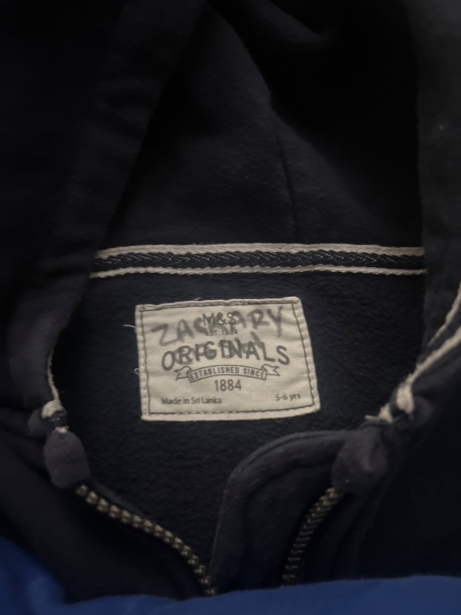 Description : Marks and Spencer brand zip up hoodies. Each is size 5-6y on the tag but I find they fit more like a 4-5y. The navy blue has my son’s name written on the inside tag (as pictured). Royal blue, green and navy blue. Pockets in front.