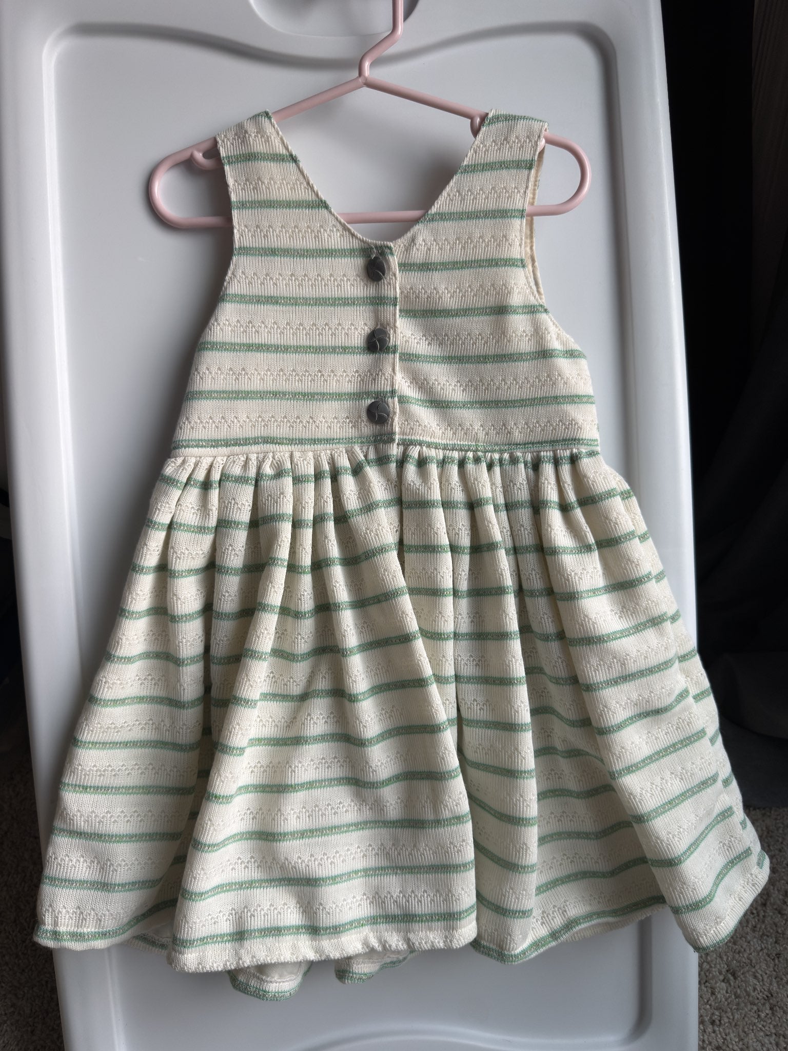 Description : Brand new with tags. This is a heavier fabric with a delicate design pattern. The inside is lined with a soft bamboo. These dresses are meant for durability.